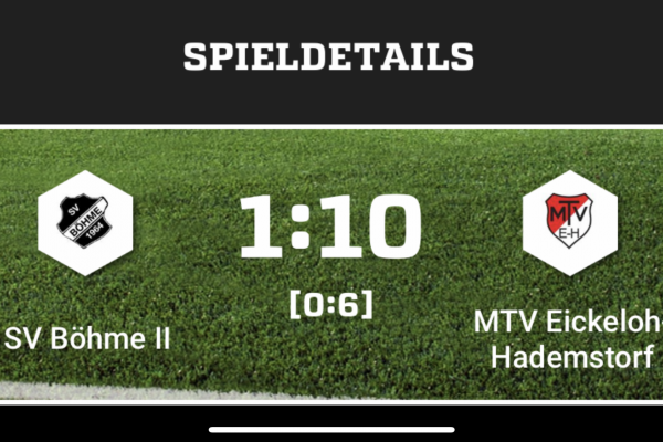 Spielbericht Herren Punktspiel SV Böhme II - MTV Eickeloh-Hademstorf 1:10