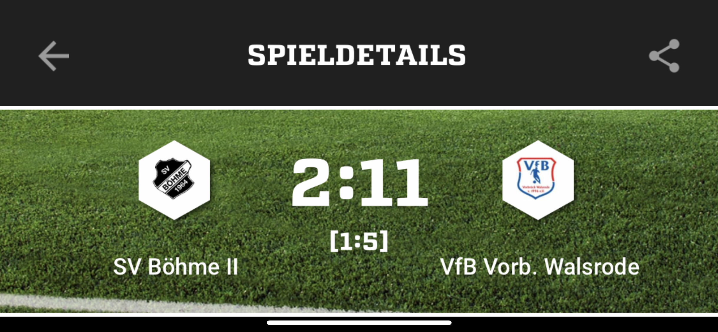 Spielbericht Herren Punktspiel SV Böhme I - VfB Vorbrück Walsrode 2:11