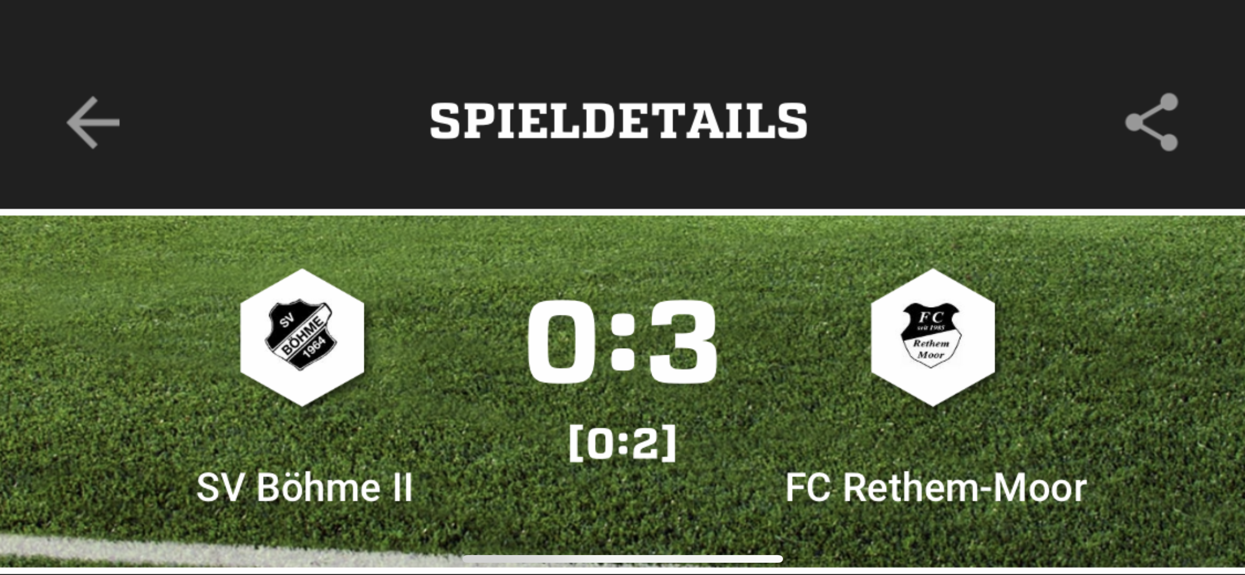 Spielbericht Herren Punktspiel SV Böhme II - FC Rethem-Moor 0:3