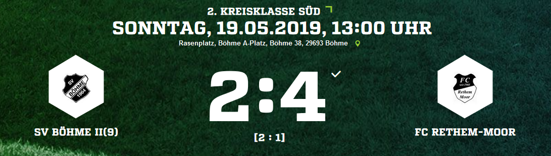Spielbericht Herren Punktspiel SV Böhme II - FC Rethem-Moor 2:4