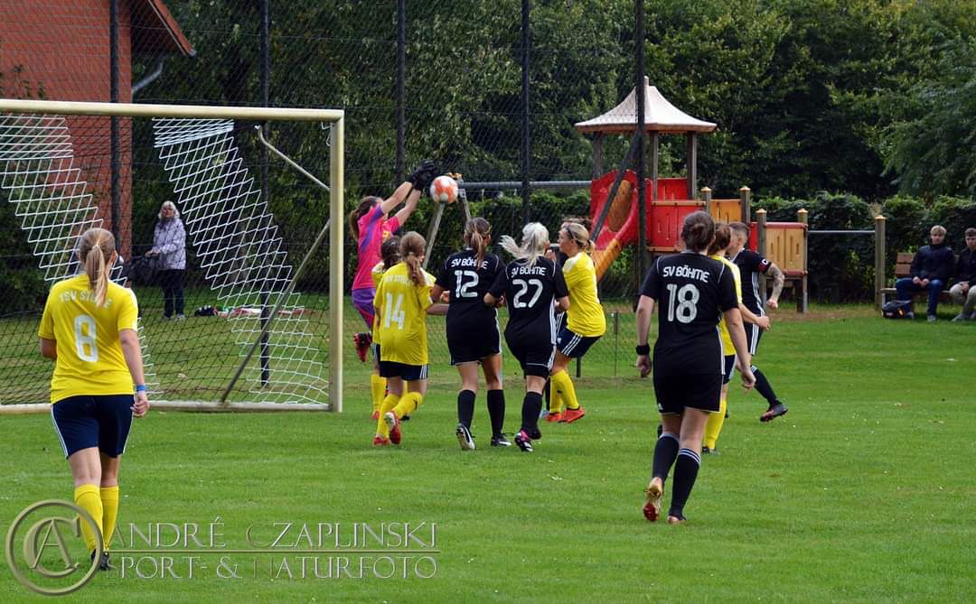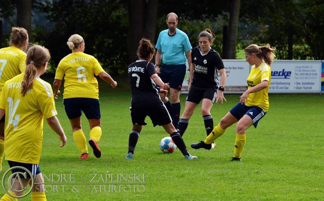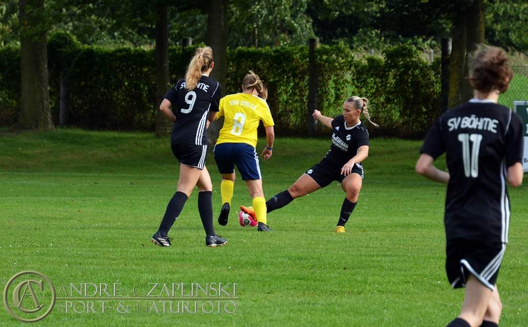 Nach der doch etwas unglücklichen Niederlage am vergangenen Sonntag in Oste, gab es am Samstag den 23.09. einen weiteren Rückschlag, im Heimspiel gegen den TSV Stelle mit 1:3 für unsere Landesligistinnen. Wie im letzten Spiel konnten wir erneut, nach gerade einmal 3 gespielten Minuten, die frühe Führung durch Karo erzielen. Dieses Tor brachte den gewissen Rückhalt in unserem Spiel und fast im gesamten ersten Durchgang war danach die Spielrichtung klar, es ging meist auf das Tor der Gäste aus Stelle. Jedoch, wie auch schon in den vergangenen Partien, fehlt den SVB-Spielerinnen derzeit auch das Quäntchen Glück, um aus guten Szenen auch zählbares zu verwerten, so dass man mit diesem Spielstand in die Halbzeitpause ging.Nach fast einer Stunde Spielzeit, innerhalb von 5 Minuten, drehten die Gäste dann das Spiel völlig, durch 2 Tore ihrer Ausnahmestürmerin Alina Prüfer. Nun lief Böhme einem Rückstand hinterher, kam aber auch zu einigen guten Möglichkeiten um den Ausgleichstreffer zu erzielen und auch um erneut in Führung zu gehen, jedoch „wollte die Kugel einfach nicht rein“! In der Nachspielzeit schlug Prüfer dann nochmals zu, führte im Strafraum einen Slalomlauf auf und schob zum 1:3 Endstand ein.