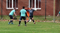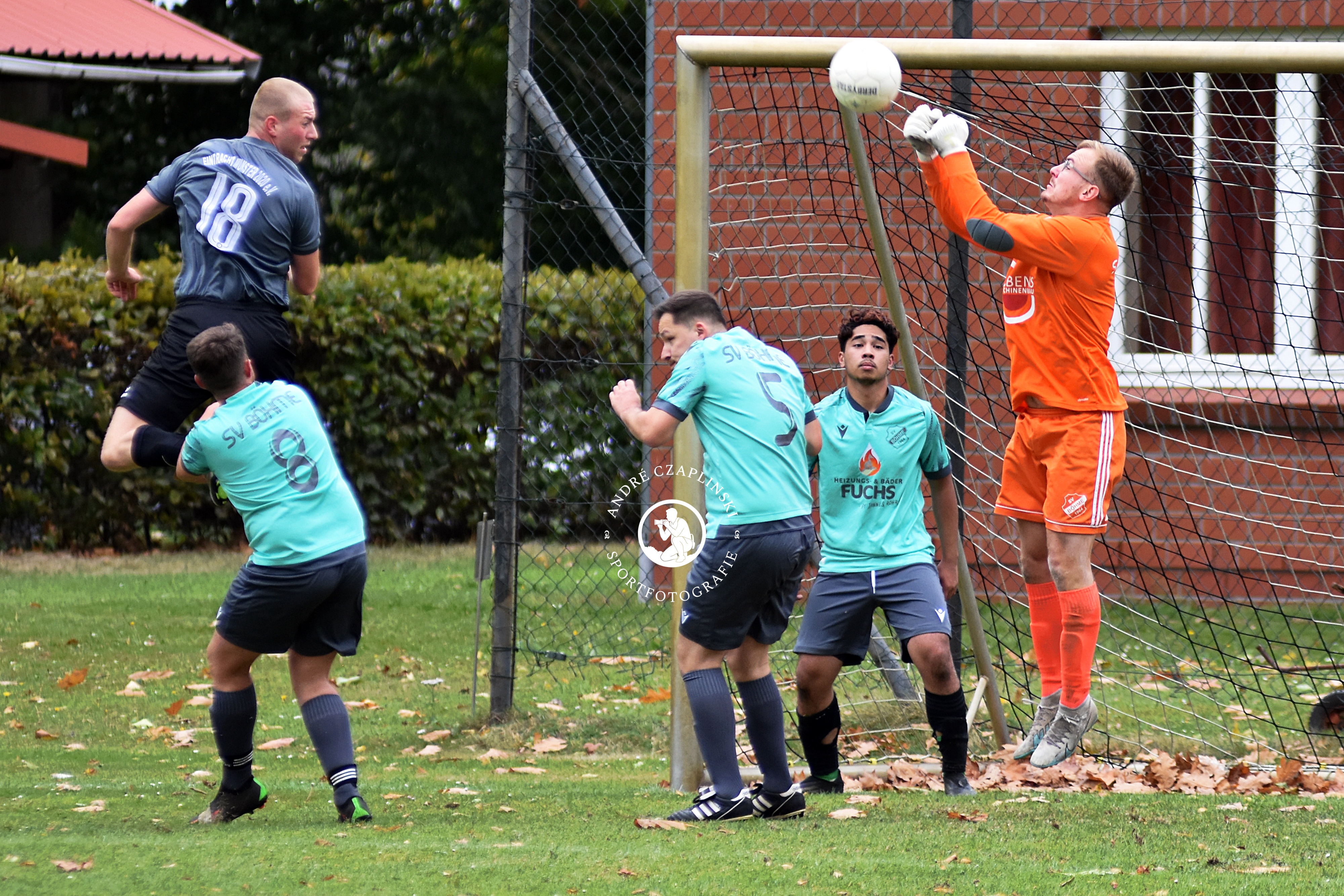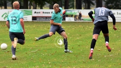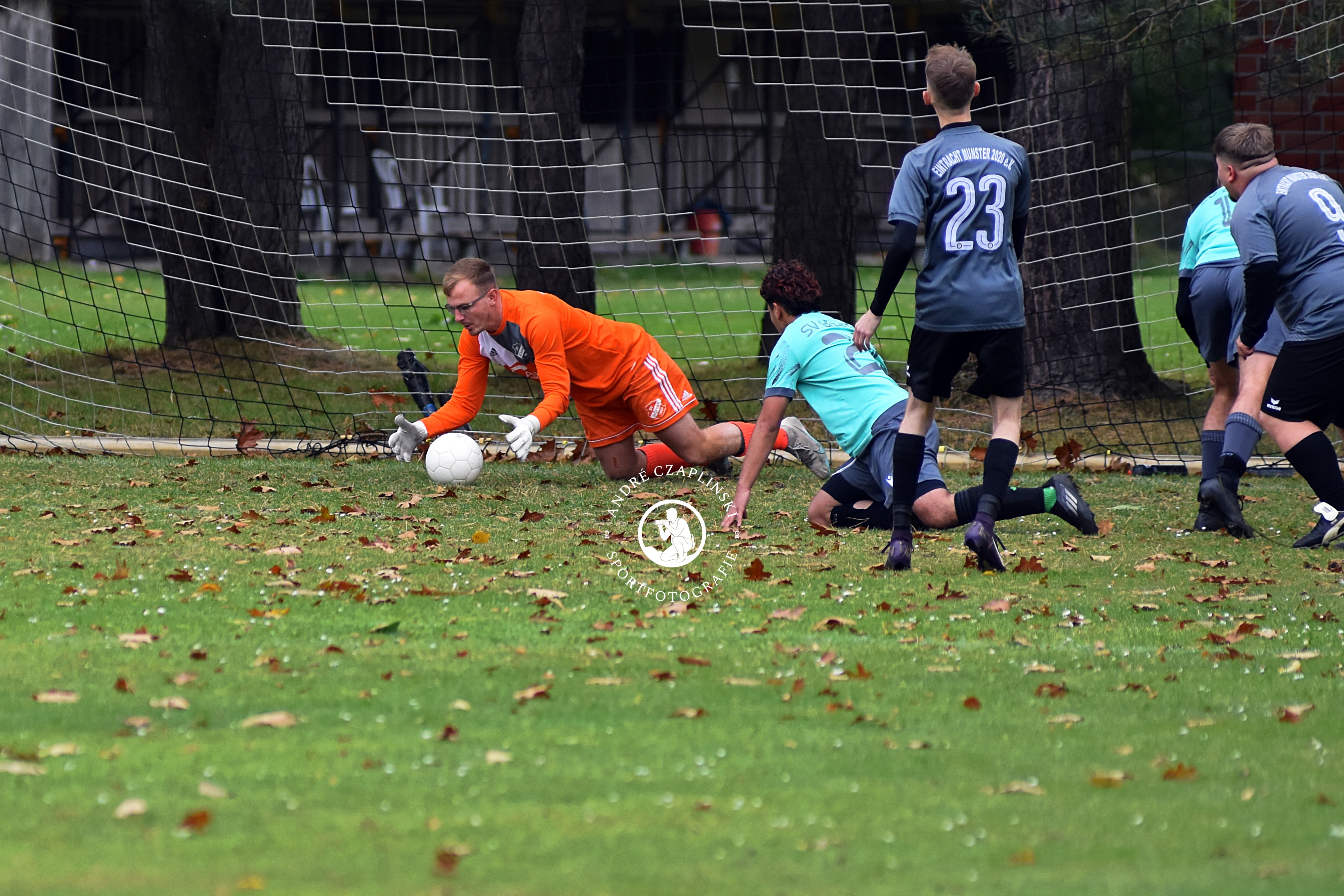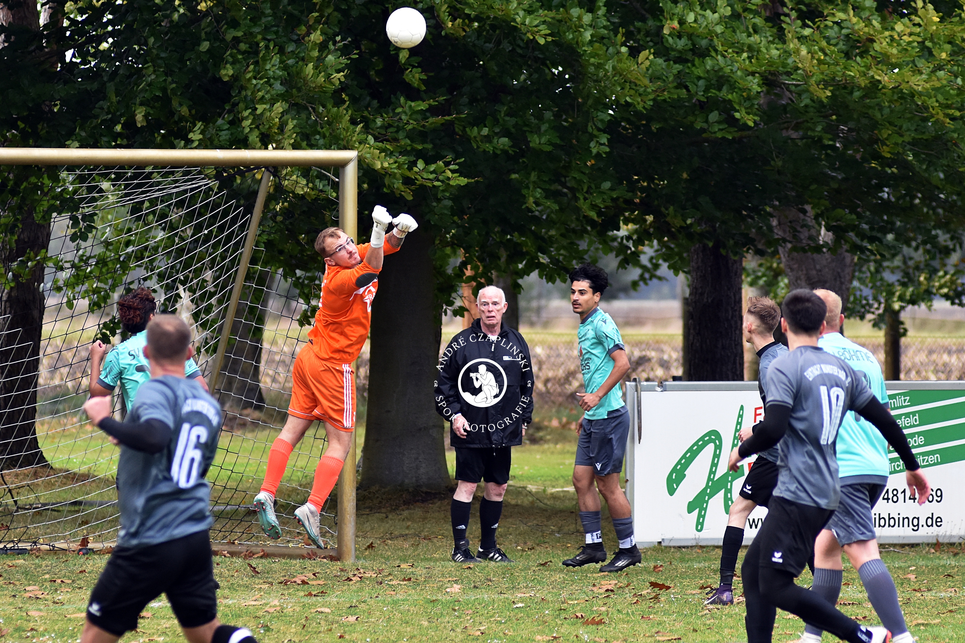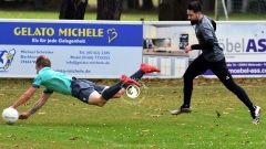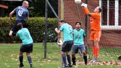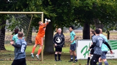 Direkt nach Wiederanpfiff – mit unserem eigenen Anstoß – machten wir das Spiel schnell. Ein stark gespielter Pass in die Tiefe erreichte Rene Dumke, der zu schnell für seinen Gegenspieler war und aus guter Position zum Abschluss kam. Leider fehlte etwas Power im Schuss, sodass der gegnerische Keeper sicher parieren konnte.