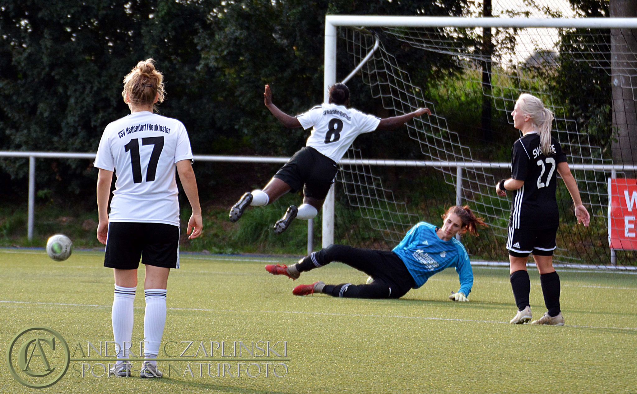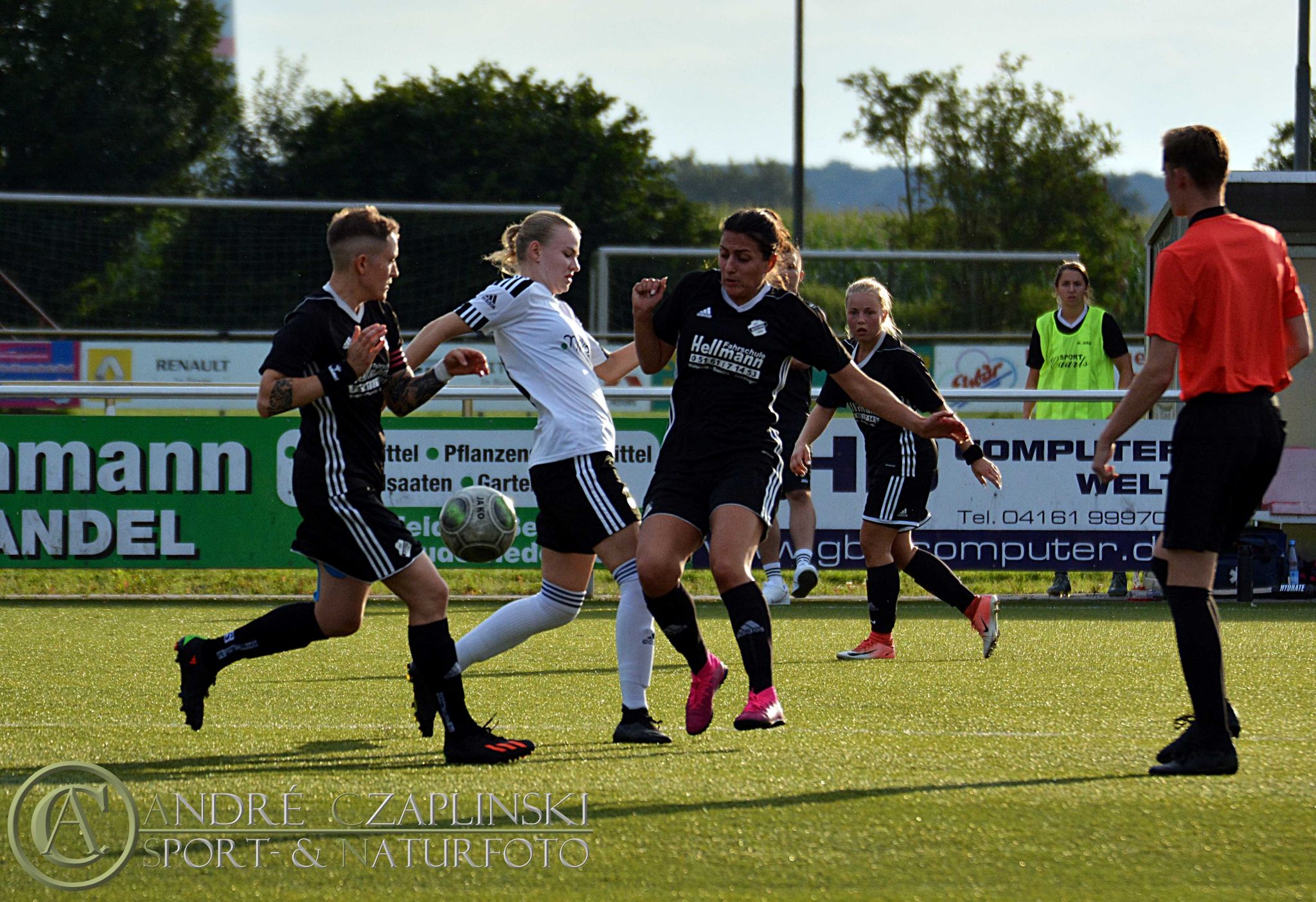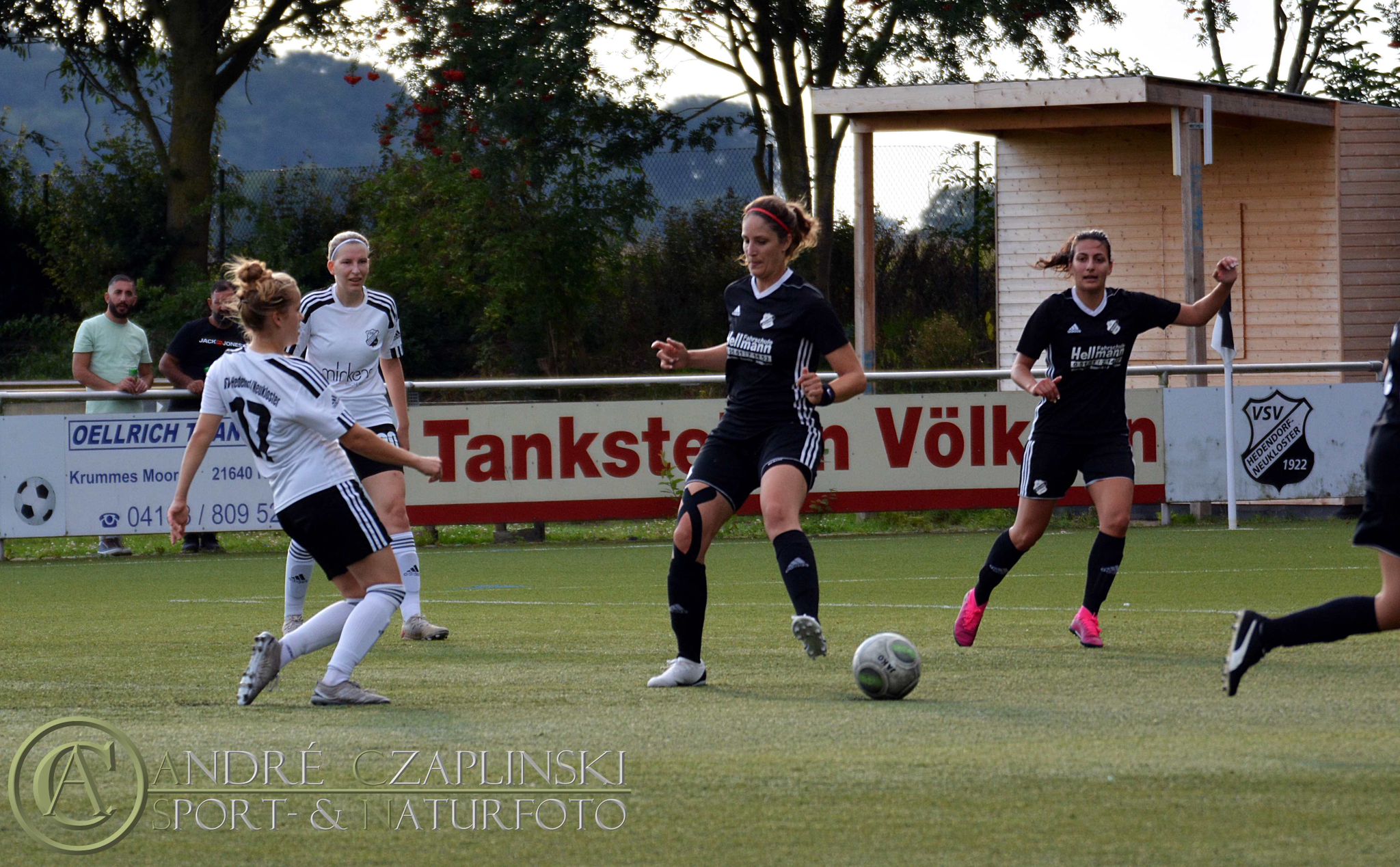 Im Ersten Saisonspiel unterlagen unsere Landesligistinnen, beim Oberliga-Absteiger vom VSV Hedendorf-Neukloster, mit 3:1. Spielerinnen und Anhang konnten zwar bereits nach nicht einmal einer gespielten Minute jubelt, aber verfrüht. Der Schiedsrichter pfiff eine leider berechtigte Abseitsposition, innerhalb eines Gewühls im Strafraum, somit war der Jubel nur von kurzer Dauer. Das Heimteam vom VSV spielte, was niemanden verwundern sollte, als ehemaliger Oberligist, technisch einen sehr guten Fußball, baute ruhig sein Spiel auf, um dann meist über ihre Außenpositionen die Angriffe zu starten. Unser personell angeschlagenes Team hielt jedoch dagegen und die vielversprechendsten VSV-Angriffe wurden letztlich von unserer Keeperin Pia neutralisiert. Unsere beste Phase im ersten Durchgang hatten wir im den letzten 15 Minuten, dort wurden mehrere Großchancen herausgespielt, jedoch nicht zu Treffern genutzt. Genau in diese Phase stachen die Gastgeberinnen mit 2 Angriffen und mit 2 Treffern in der 43 und 45 Minute, was gerade psychologisch kurz vor der Pause schmerzlich für uns war. Beim Führungstreffer hatten wir ein falsches Stellungsspiel und der zweite Treffer war einfach ein satter Vollspannschuss aus ca. 16 Metern von der rechten Seite, da war nichts zu halten.Diese beiden Gegentreffer verursachten aber keinen Knick im SVB-Spiel, im Gengenteil, im zweiten Durchgang wurden wir immer besser und erspielten uns weitere Einschussmöglichkeiten. Auch wenn der VSV „am Ball“ und auch spielerisch die Oberhand hatte, waren Spielanteile und Chancenvorkommen weitgehend ausgeglichener. Wie bereits in der ersten Halbzeit waren die letzten 15 Minuten erneut unsere stärkste Phase der Halbzeit, letztlich auch verdient viel auch der Anschlusstreffer nach 67 Minuten durch Emma von der rechten Seite. Jetzt war die Partie „offen“ und wir drängten weiter auf den Ausgleichstreffer.