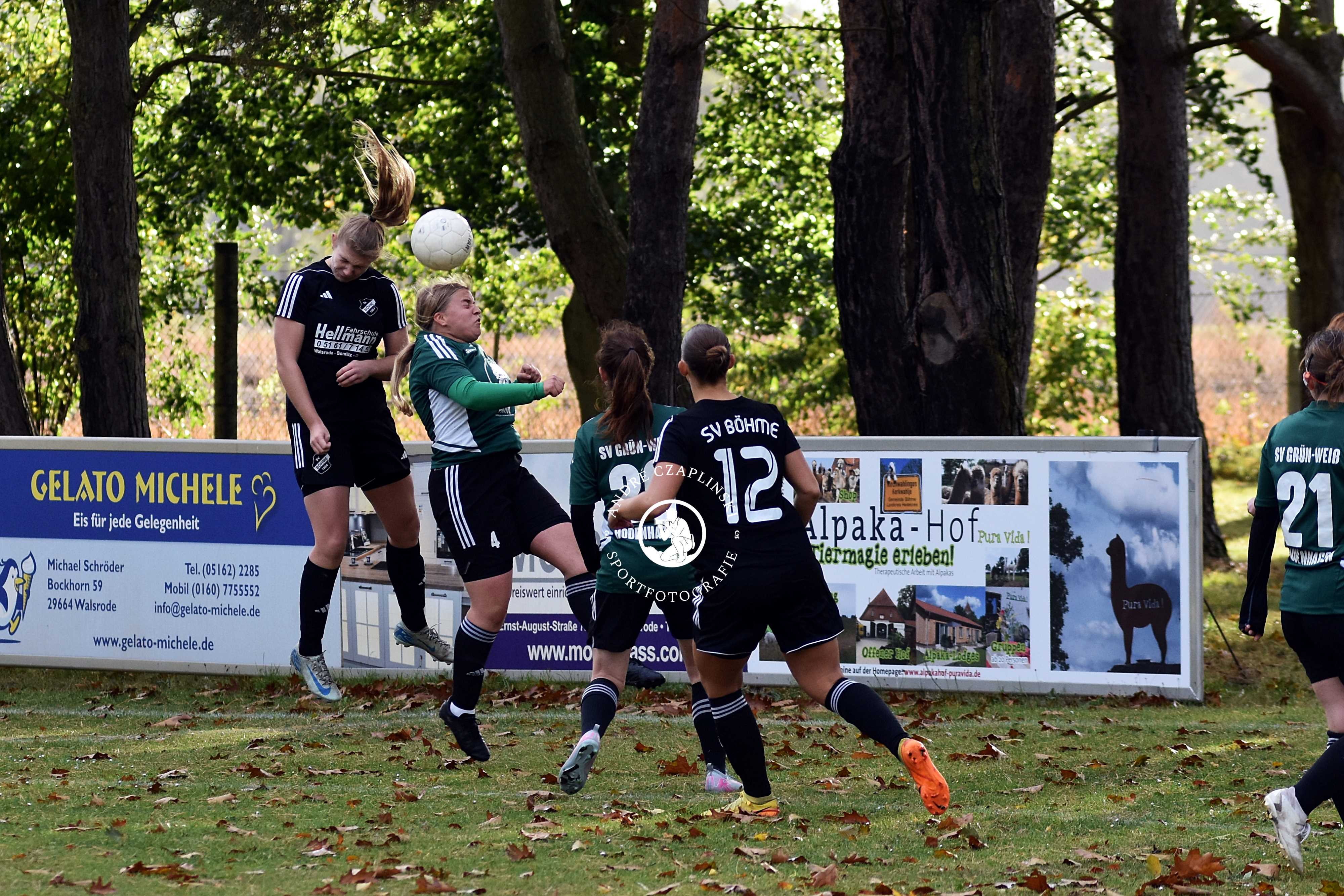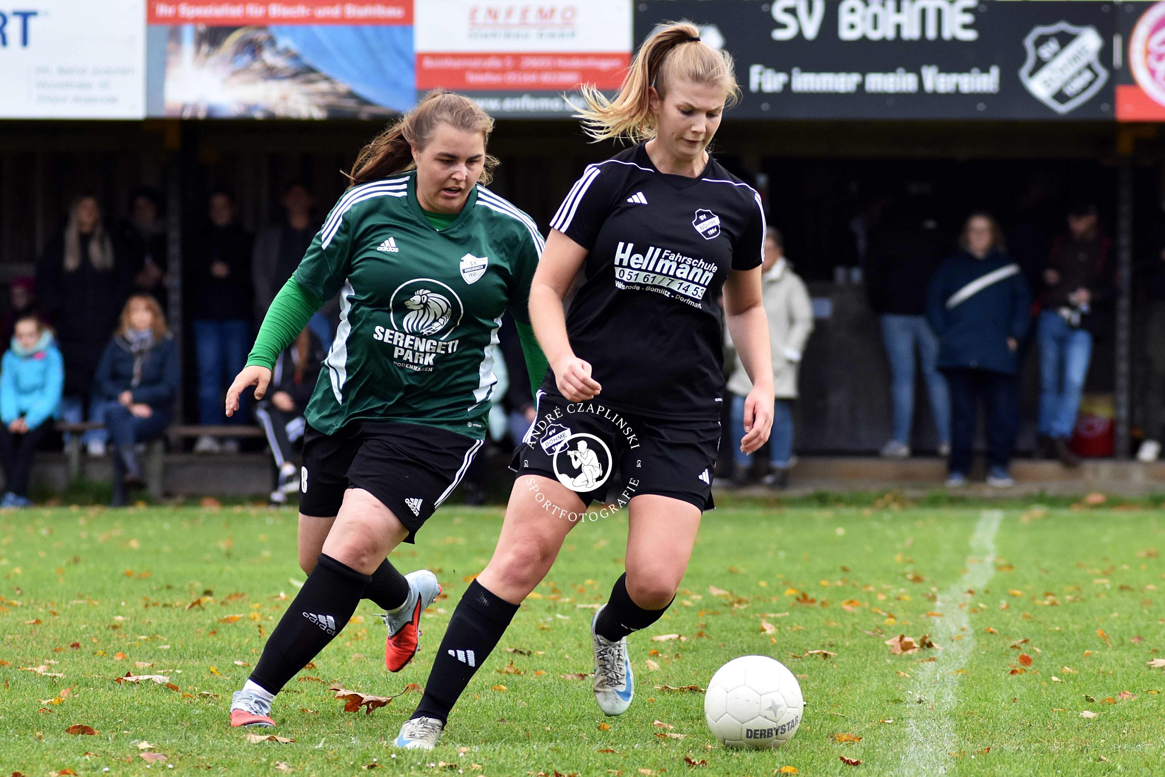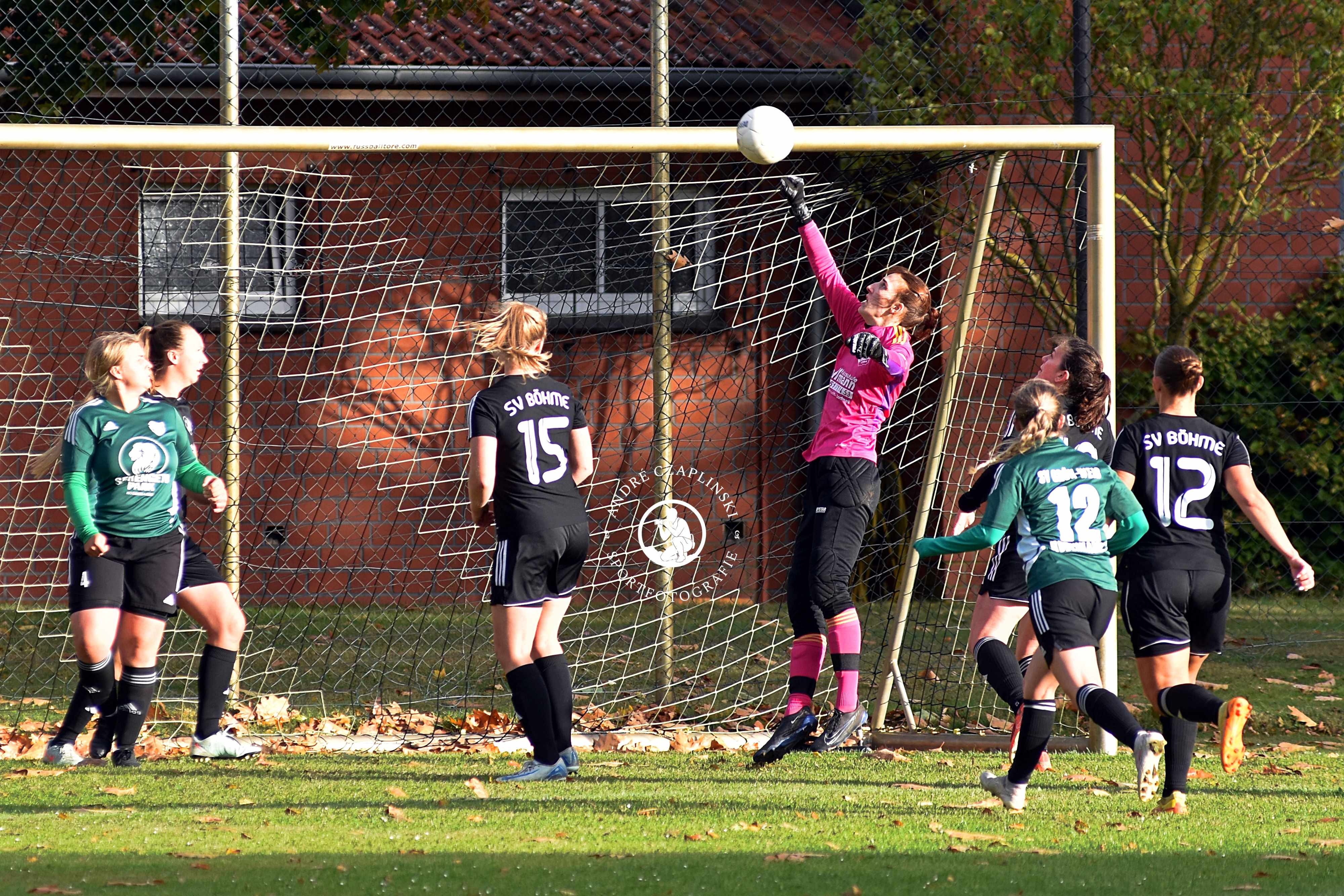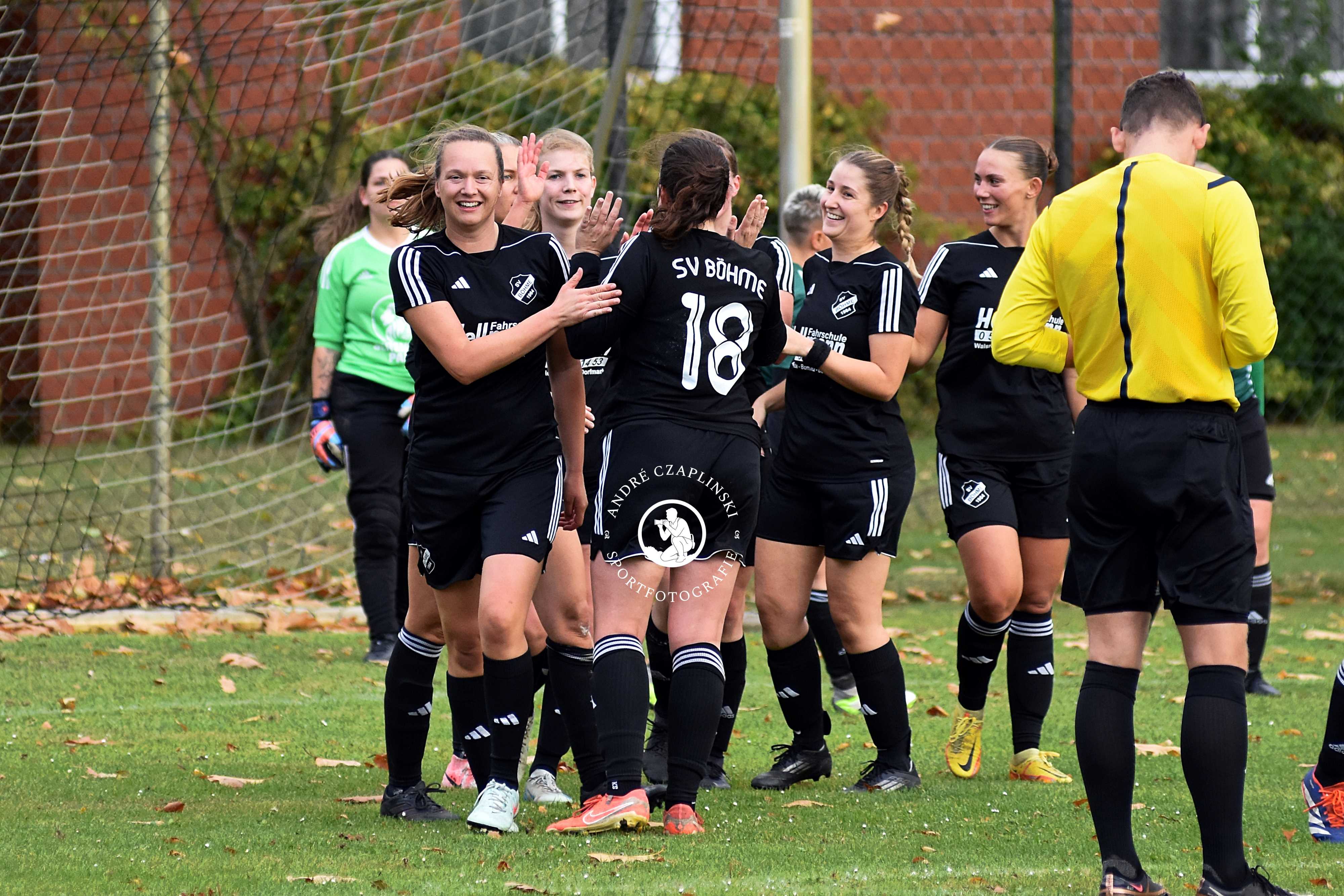 Nach dem Seitenwechsel drängte Böhme zwar auf das 4‘te Tor, aber auch in dieser Anfangsphase konnte Hodenhagen dieses verhindern und kann dann in der 53 Minute, nach einem Handspiel im Böhmer Strafraum, zu einem Strafstoß, den Laura-Anne Kursawe sicher verwandelte. Danach hatte Hodenhagen noch die Möglichkeit auf einen zweiten Treffer, nach einem aussichtsreichen Freistoß aus 17 Metern, der jedoch nicht verwandelt wurde. Die letzten 20 Spielminuten gehörten dann wieder deutlich der Heimmannschaft, wir wollten mit einem weiteren Treffer endlich “den Sack zu machen“. Diesen Treffer erzielte dann Wiebke mit ihren zweiten Tagestreffer. Sie köpfe den Ball aus kürzester Entfernung am linken Pfosten über die Linie, nach einer Flanke durch Nayomi von der rechten Seite. Den Schlusspunkt setzte dann Caro kurz vor Spielende, mit ihrem ersten Heimspieltreffer im Frauenteam, nach dem Wechsel aus der eigenen Jugend.
