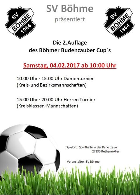 Auch in diesem Jahr findet wieder unser Budenzauber Cup in der Rethemer Sporthalle statt.
