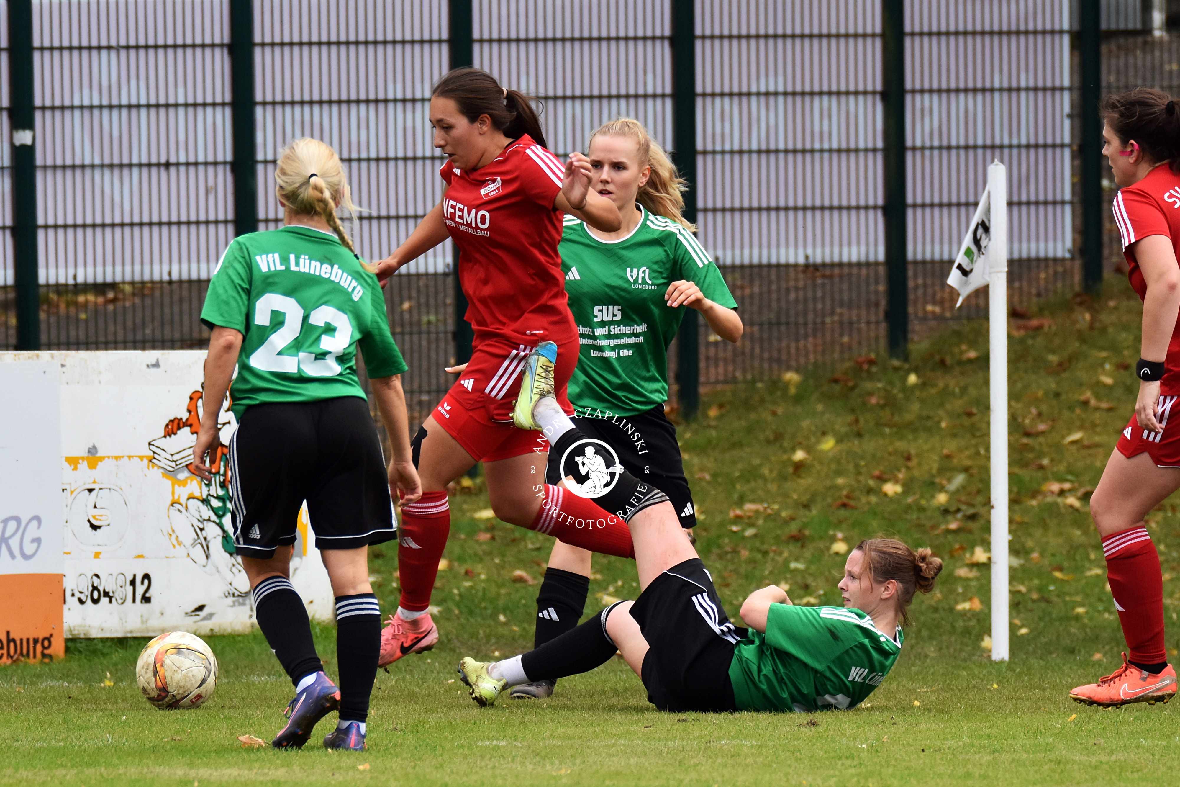 Böhme erwischte sprichwörtlich „einen gebrauchten Tag“. Bereits nach wenigen Sekunden hatten wir selbst die Möglichkeit, bereits frühzeitig in Führung zu gehen, wir verfehlten jedoch diese große Chance zum Führungstreffer, bzw. die VfL-Torfrau hielt den Ball. Nur wenige Sekunden später startet der VfL einen fast identischen Angriff über ihre rechte Seite, dieser wurde jedoch erfolgreich abgeschlossen. Somit mussten wir schon wieder einem frühen Rückstand hinterherlaufen. Weiter lief es in der gesamten 1. Halbzeit irgendwie nicht rund für uns, obwohl wir im gesamten Spiel deutlich mehr Spielanteile hatten, den meisten Ballbesitzt und einen ruhigeren und meist sicheren Spielaufbau, so zählen am Ende immer wieder nur die geschossenen Tor, und der VfL schloss dann 2 Konter über die linke Seite erfolgreich ab, somit ging es mit einem 3:0 Rückstand in die Halbzeitpause.