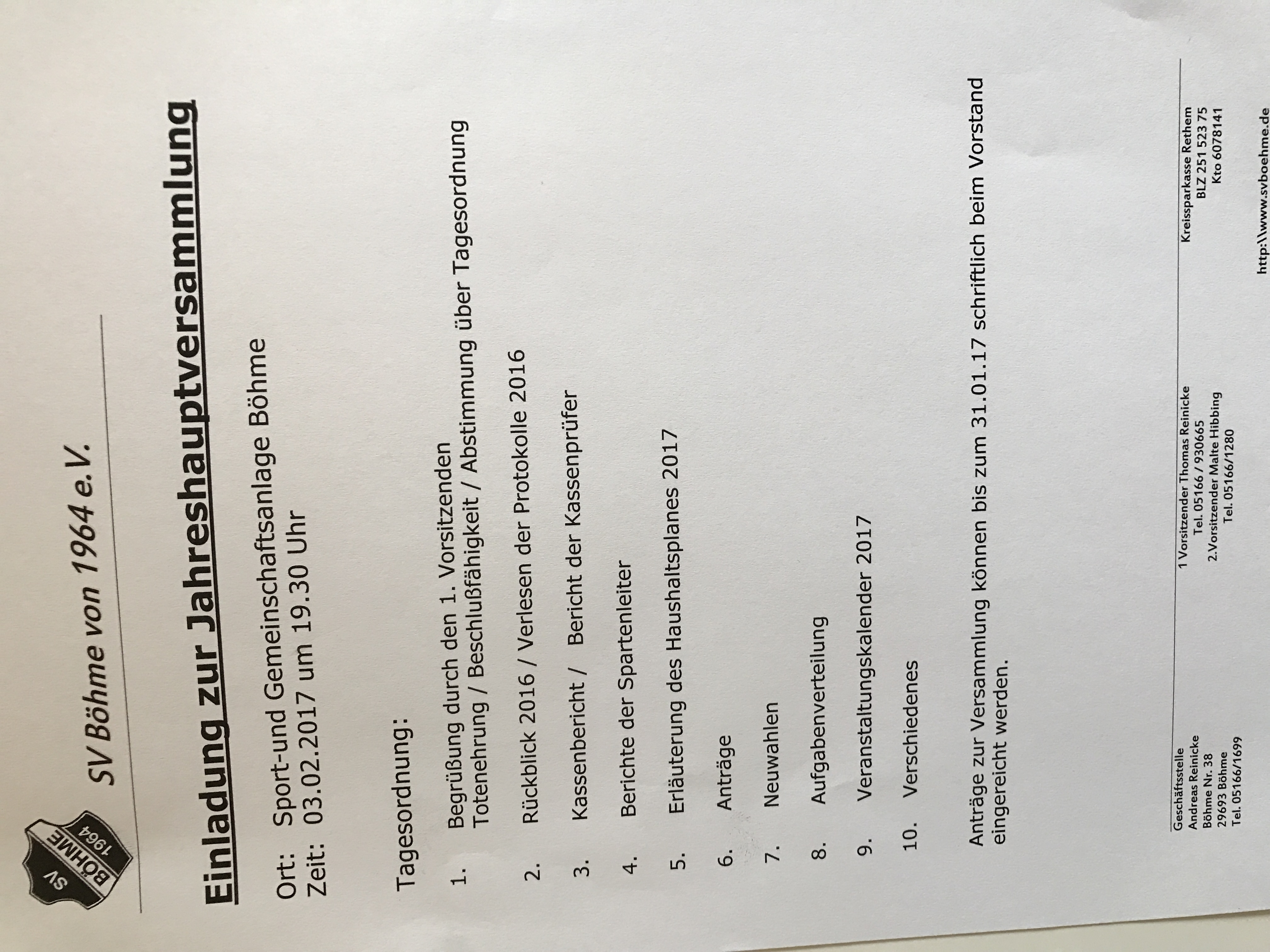 das sportliche Jahr ist wieder mal vorbei und natürlich steht auch nun wieder die Jahreshauptversammlung am 03.02.17 an.
