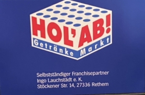 Neue Trinkflaschen für die erste Herren! Das Team bedankt sich recht herzlich bei Ingo Lauchstädt und seinem Team von HolAb! aus Rethem. Bereits seit vielen Jahren beliefert der Markt unseren Verein regelmäßig Getränken. Zur offiziellen Übergabe der neuen Flaschenbehälter, die neben dem Logo des Marktes auch mit dem Vereinswappen bedruckt sind, statteten Coach Sascha Bernholz, Mannschafts-Kapitän Kevin Dietrich und Malte Hibbing dem Markt einen Besuch ab.