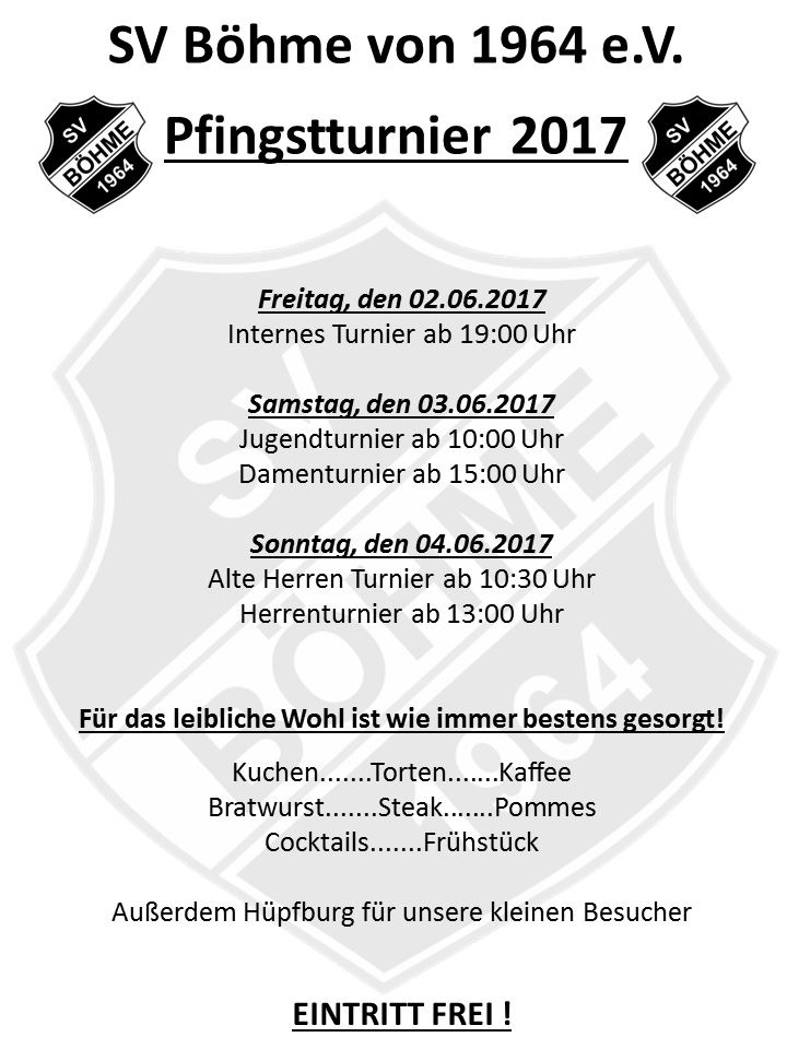 Am Wochenende steht unser alljährliches Pfingstturnier auf dem Plan.