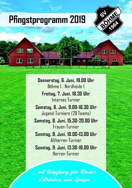 Wir freuen uns auf Turniere der alten Herren, Herren, Frauen und der Jugend wo dieses Jahr 29 Mannschaften dabei sind. Für Essen ist reichlich gesorgt, Bier steht auch kalt und gutes Wetter ist bestellt ! Was nun noch fehlt seid Ihr, wir freuen uns auf Euch !!!
