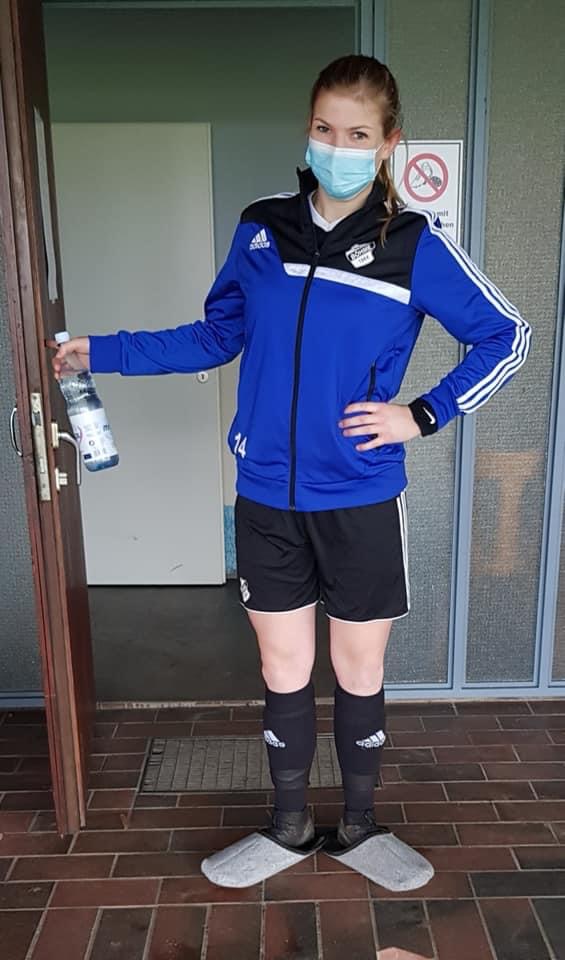 Eine Kuriosität gab es dann noch am Rande, denn die Spielerinnen mussten Filzpantoffeln über die Fußballschuhe ziehen, auf dem Weg von der Kabine nach draußen und auch zurück, um den Boden im Gebäude zu schonen.