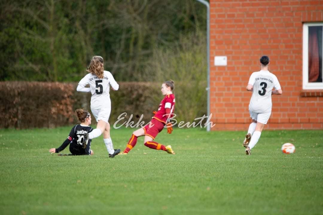 Unsere Mannschaft schaffte es in den gesamten ersten 45 Minuten nicht, ihr Spiel aufzuziehen und überließen den Gästen die Initiative, zumindest im ersten Durchgang. Dabei hatte Celle die erste Großchance des Spiels bereits in der 5. Minuten, durch eine “1 zu 1“ Situation, die Wiebke in unserem Tor jedoch glänzend parieren konnte. Nach 25 Minuten fiel dann aber der Führungstreffer der Gäste, zu diesem Zeitpunkt auch nicht unverdient. Das gewohnte Böhmer Offensivspiel fand so gut wie nicht statt, so dass es mit dem 0:1 Rückstand auch in die Kabine ging. Nach dem Seitenwechsel übernahm der SVB zwar mehr und mehr das Spiel und die Partie verlief schwerpunktmäßig immer mehr in Richtung ESV-Tor, jedoch fehlte uns an diesem Tage die nötige Durchschlagskraft, um unsere zum Teil guten Chancen zählbar zu verwerten. Die Fortunen gingen ihrerseits bis zum Äußersten und stemmten sich gegen den Ausgleichstreffer, der in der zweiten Halbzeit stetig in der Luft lag. Dieser Einsatz wurde dann auch durch den Abpfiff der Partie, beim Stand von 0:1, belohnt und Celle verbuchte die so wichtigen drei Punkte.