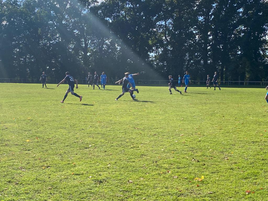 Dies sollte ihm auch gelungen sein ! Wir zeigten eine enorme Mannschaftsleistung in der wir jeden Ball wollten. Besonders hervorzuheben hierbei waren unsere Defensivspieler wie z.B. Urs der seinem Gegenspieler an diesem Tag so gut wie kein Chance lies. Ähnlich unsere Nummer 6 der gefühlt überall auf dem Spielfeld seine Duftmarke setzte. An der Chancenauswertung änderte sich doch erstmal nichts, denn auch die Jungs in blau schafften es nicht den Ball im Netz unterzubringen.