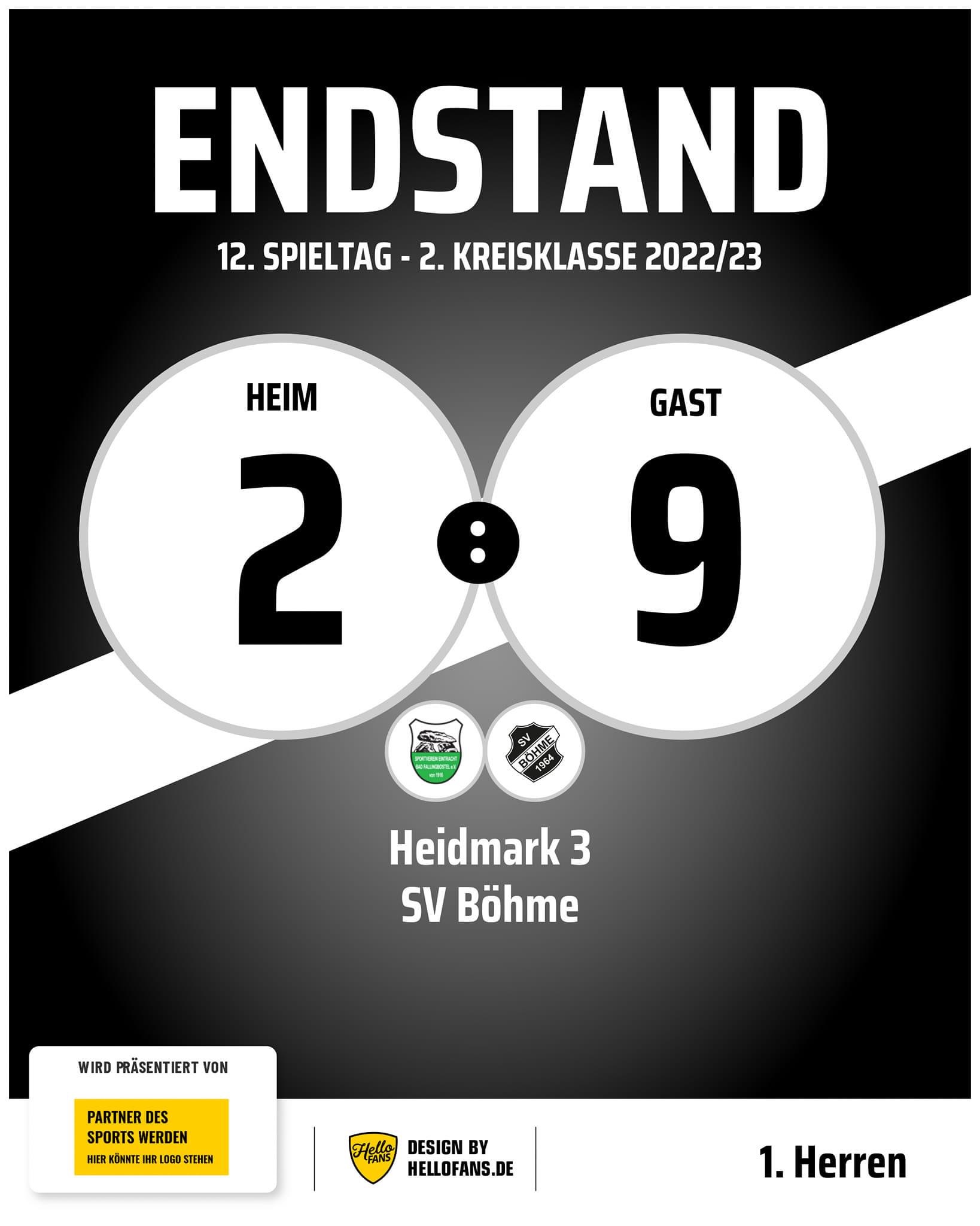 Spielbericht 1. Herren Punktspiel Heidmark III - SV Böhme 2:9