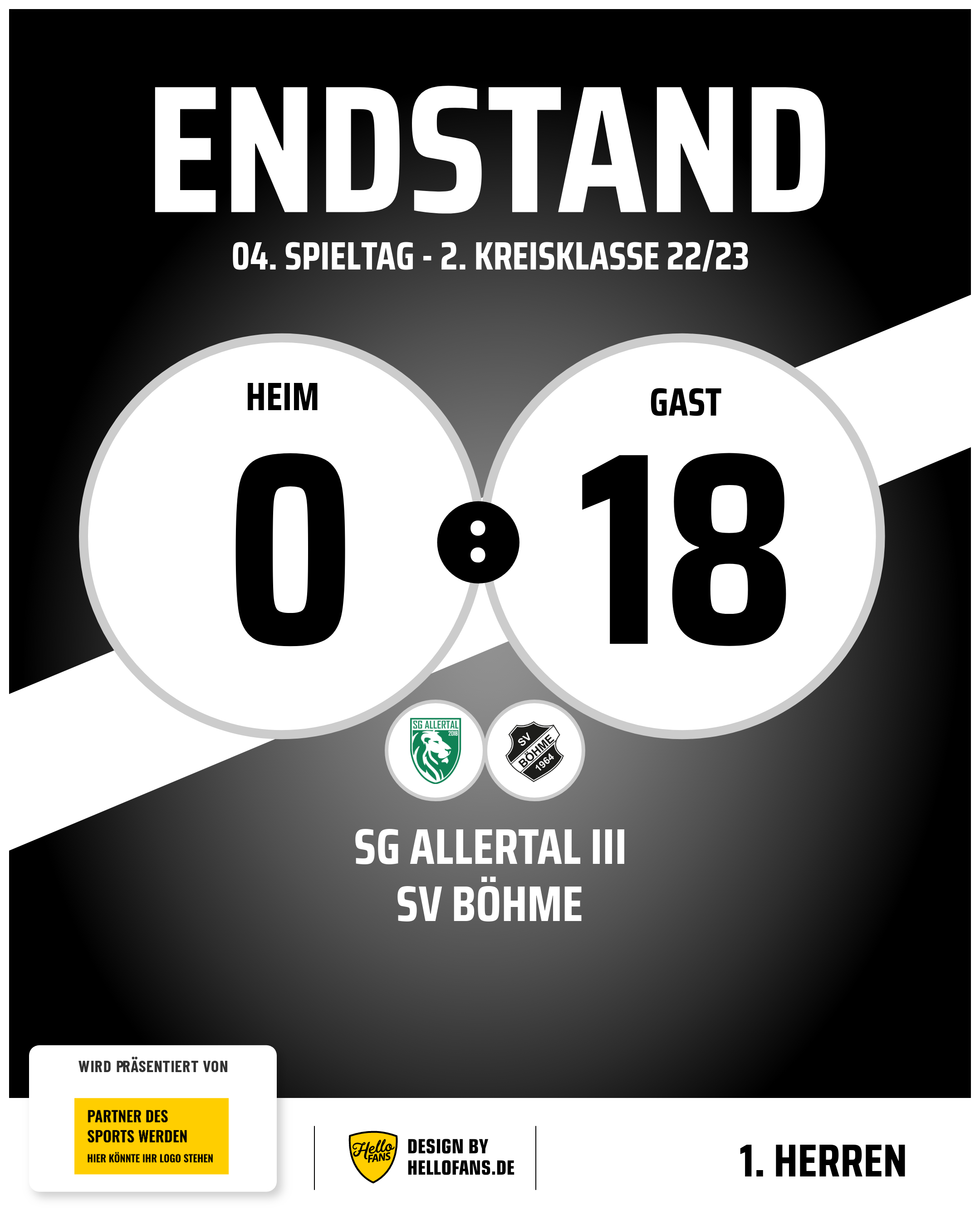 Spielbericht 1. Herren Punktspiel SG Allertal III - SV Böhme 0:18