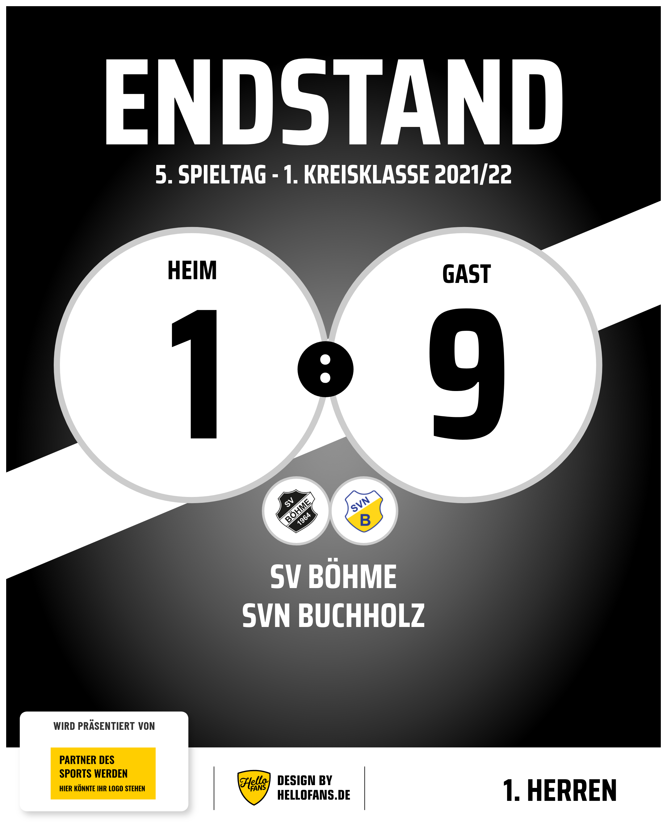 Spielbericht 1. Herren Punktspiel SV Böhme I - SVN Buchholz I 1:9