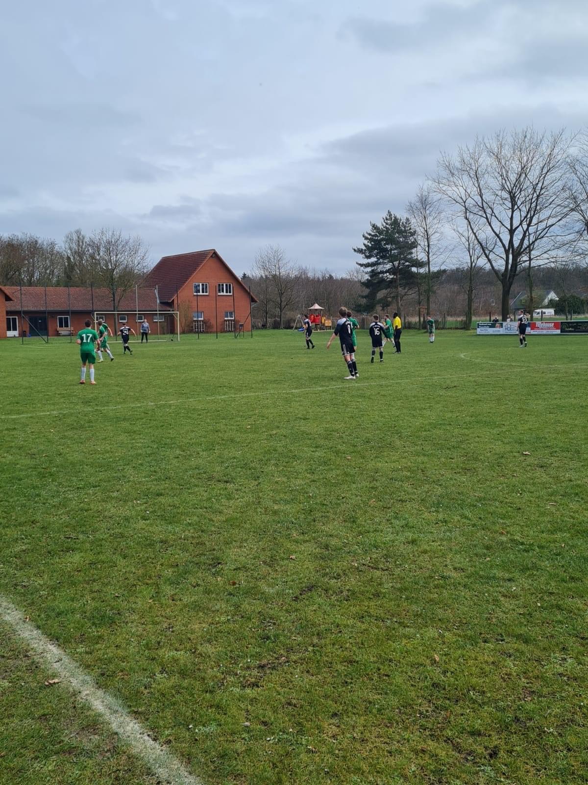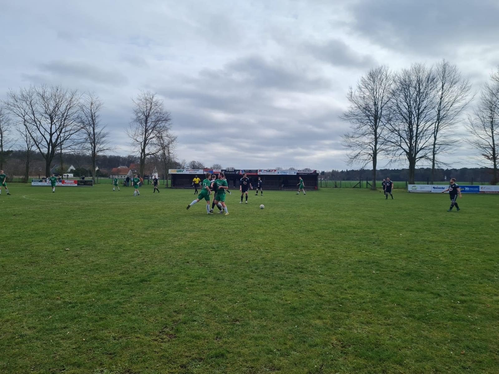 In Hälfte zwei sollte alles besser und das wurde es dann auch, zumindest für eine Viertelstunde. Die Angriffe wurden konsequenter und zielstrebiger zu Ende gespielt und es dauerte nur wenige Minuten bis eine schöne Kombination über die rechte Seite von Krüger zum 3:0 abgeschlossen werden konnte. Kurze Zeit später durfte Kevin erneut vom Punkt ran und verwandelte diesmal per Nachschuss zum 4:0. Damit war das Spiel entschieden und es fiel nur noch ein Tor durch Merlin per Kopfball nach schöner Vorlage von Lennart. Während die Allertaler dem Feierabendbier entgegenfieberten, erspielten wir uns noch mehrere Möglichkeiten, ließen aber die nötige Ruhe beim letzten Pass oder beim Abschluss vermissen. Zumindest machte unsere Defensivabteilung inkl. Paschi einen super Job, sodass wir dieses Mal ohne Gegentreffer bleiben sollten. Nach 90 Minuten pfiff der souverän und ruhig agierende Schiedsrichter die Partie ab. Wir wünschen Anthony und seiner Mannschaft noch eine erfolgreiche Rückrunde.