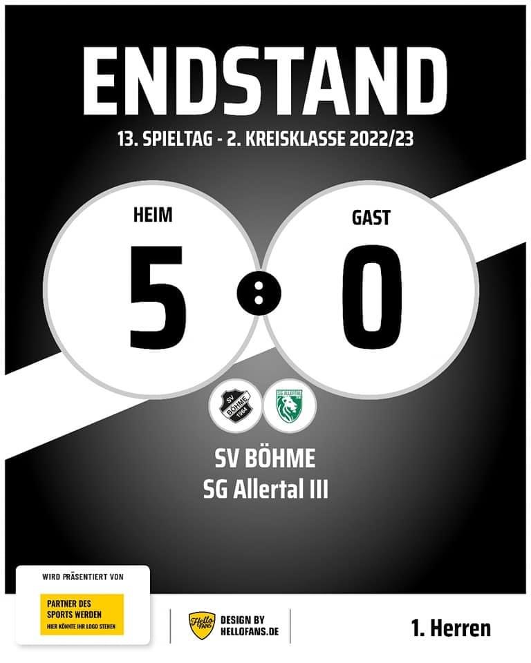 Spielbericht 1. Herren Punktspiel SV Böhme - SG Allertal III