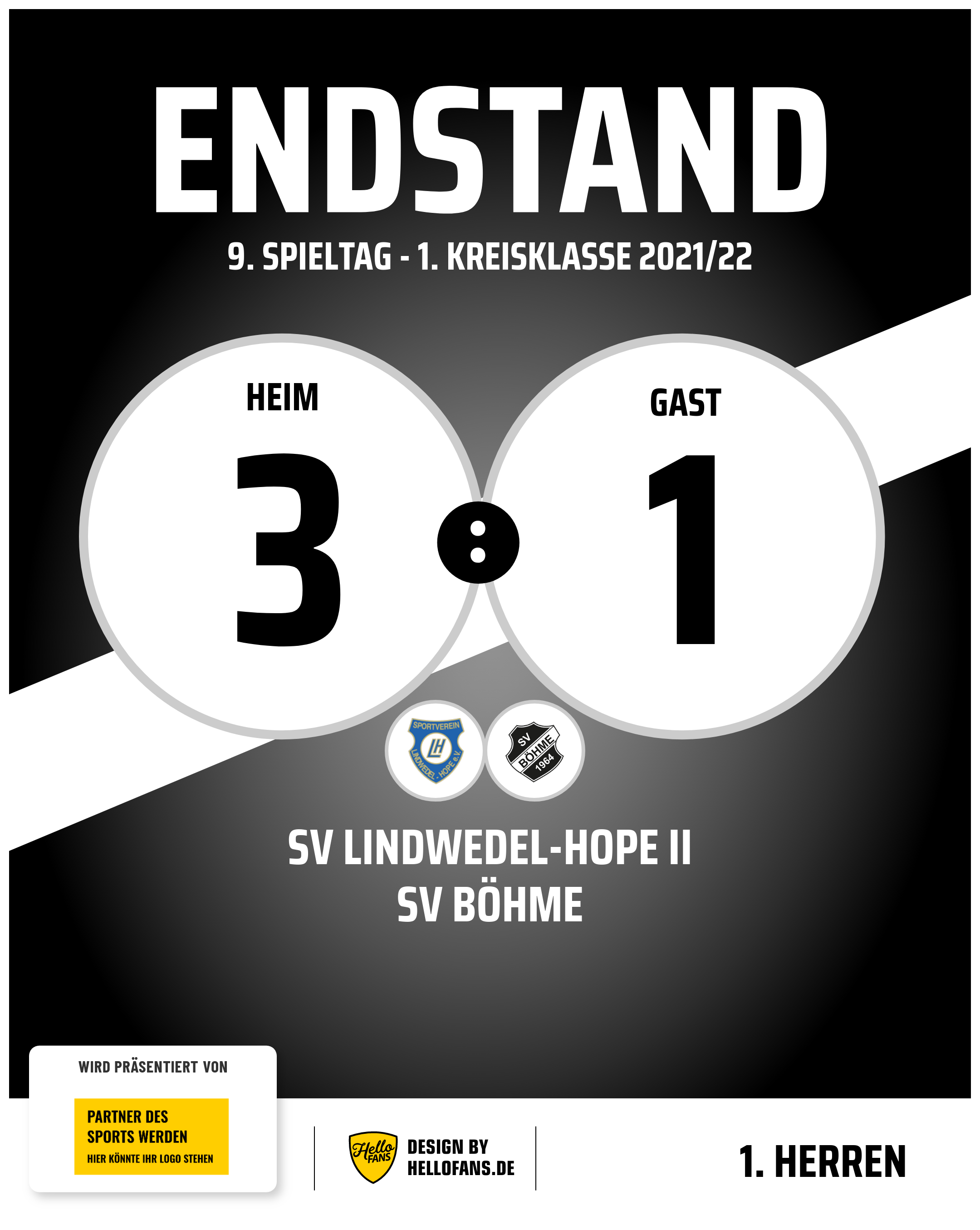 Spielbericht 1. Herren Punktspiel SV Lindwedel-Hope II - SV Böhme 3:1