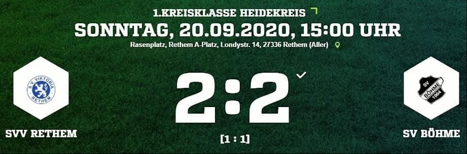 Spielbericht 1. Herren Punktspiel SVV Rethem I - SV Böhme I 2:2