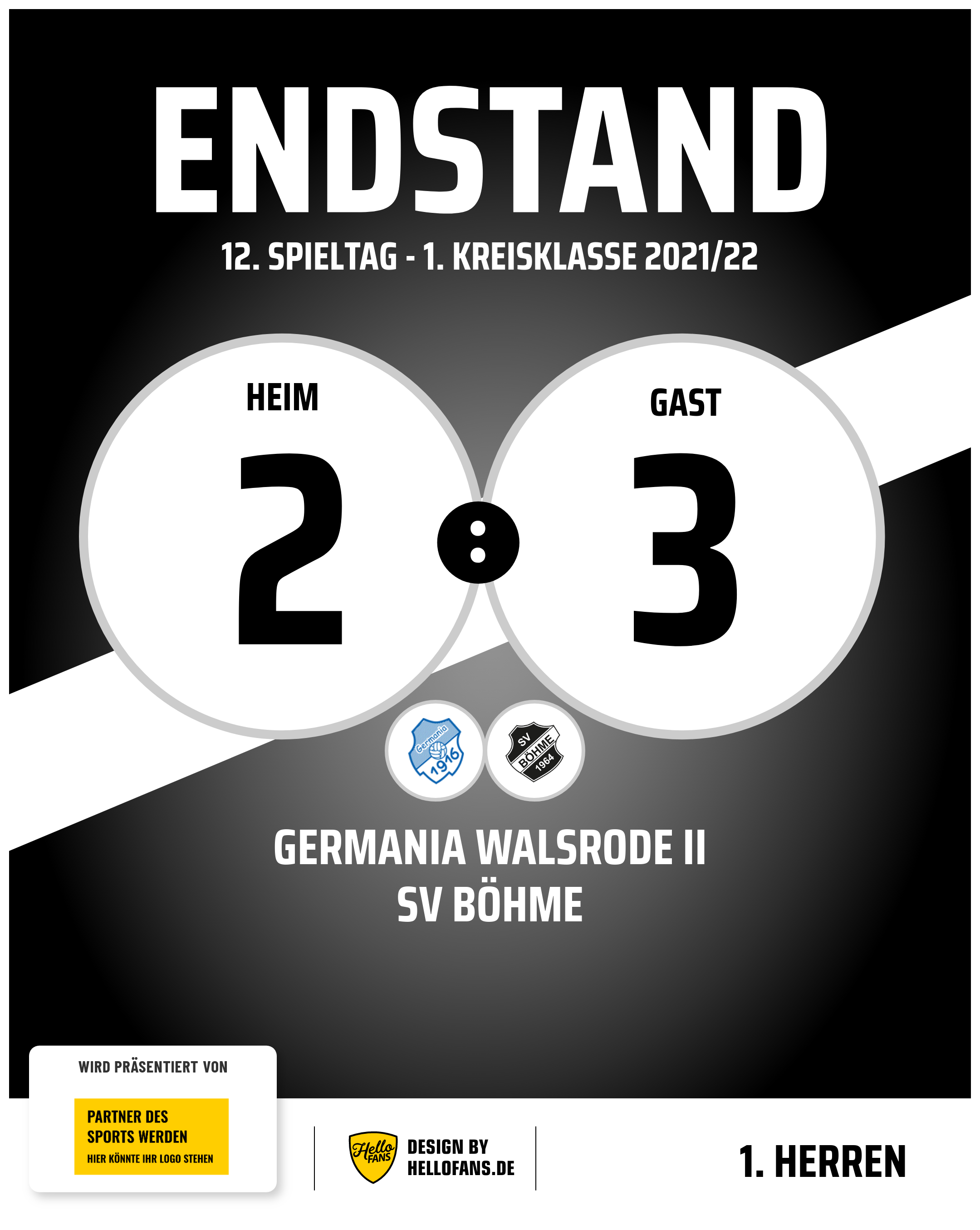 Spielbericht 1. Herren Spielbericht Germania Walsrode II - SV Böhme 2:3