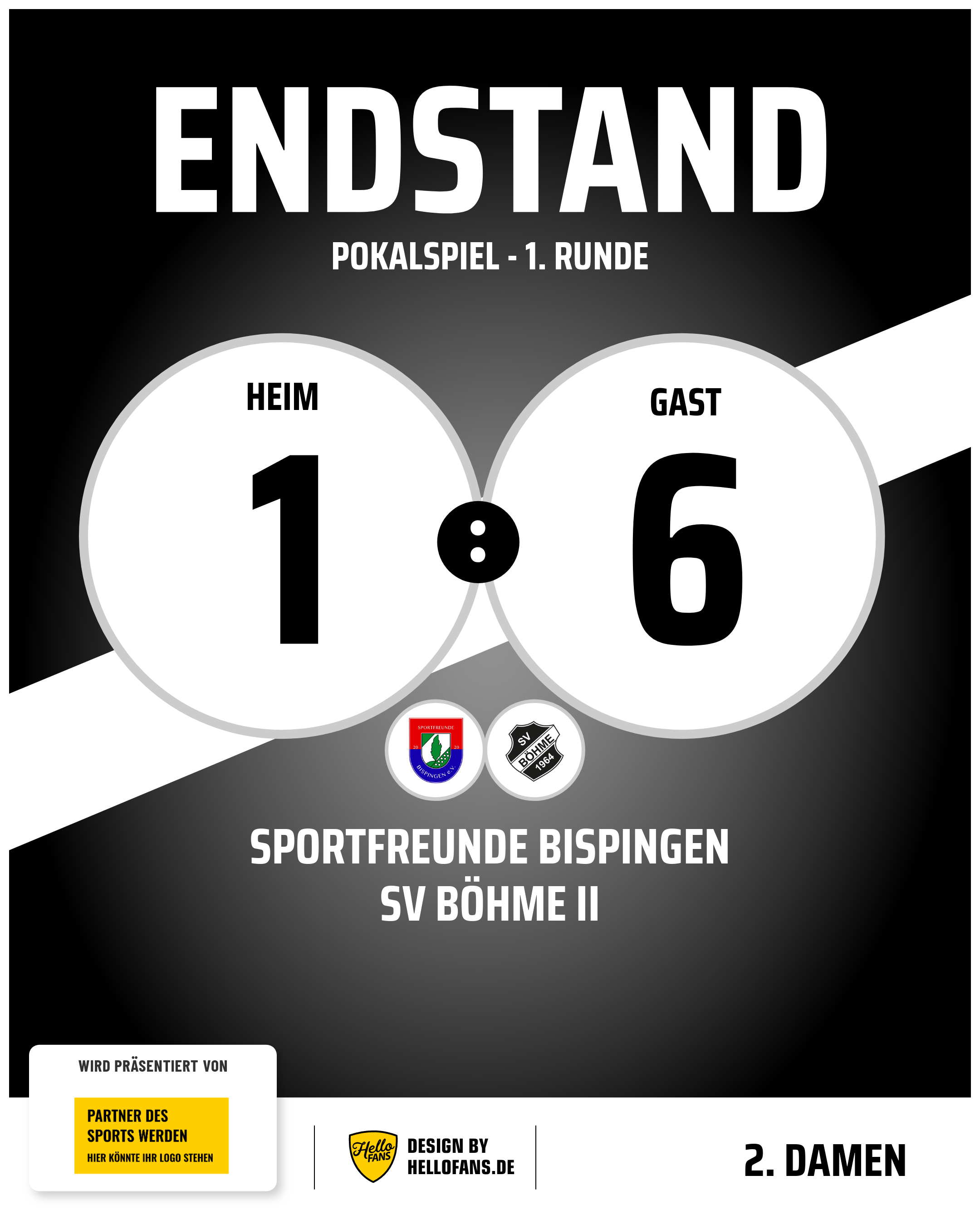 Spielbericht 2. Damen Pokalspiel Sportfreunde Bispingen - SV Böhme II 1:6