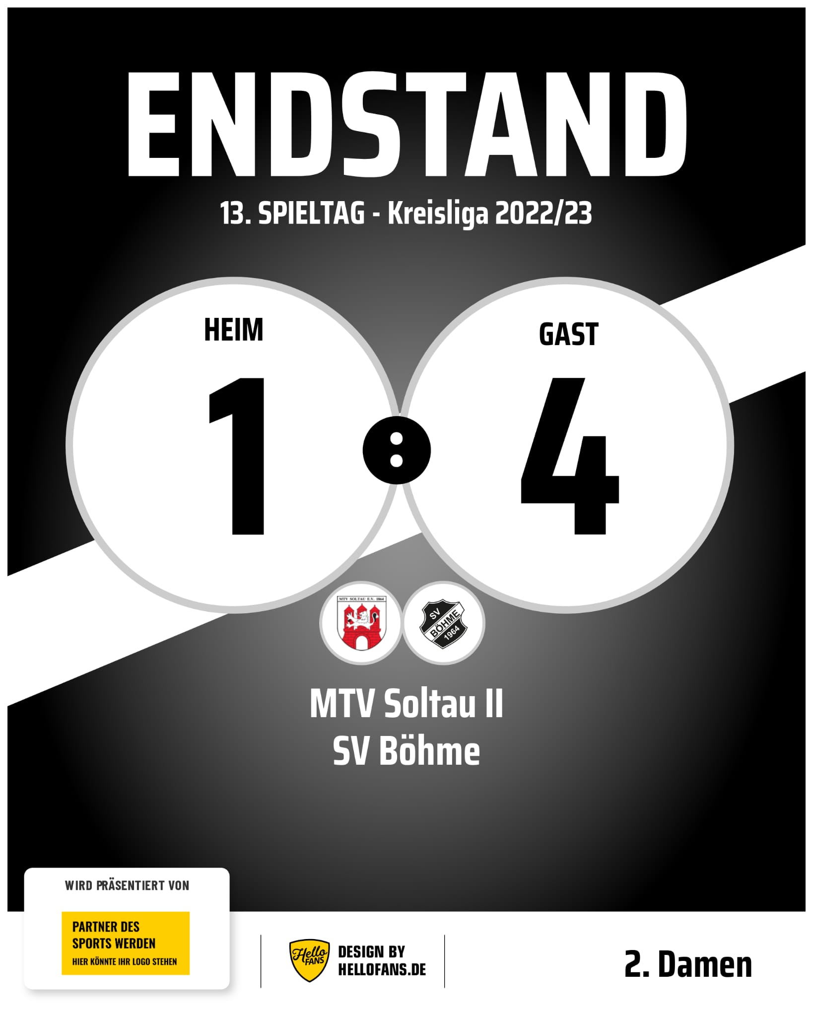 Spielbericht 2. Damen Punktspiel MTV Soltau II - SV Böhme II 1:4
