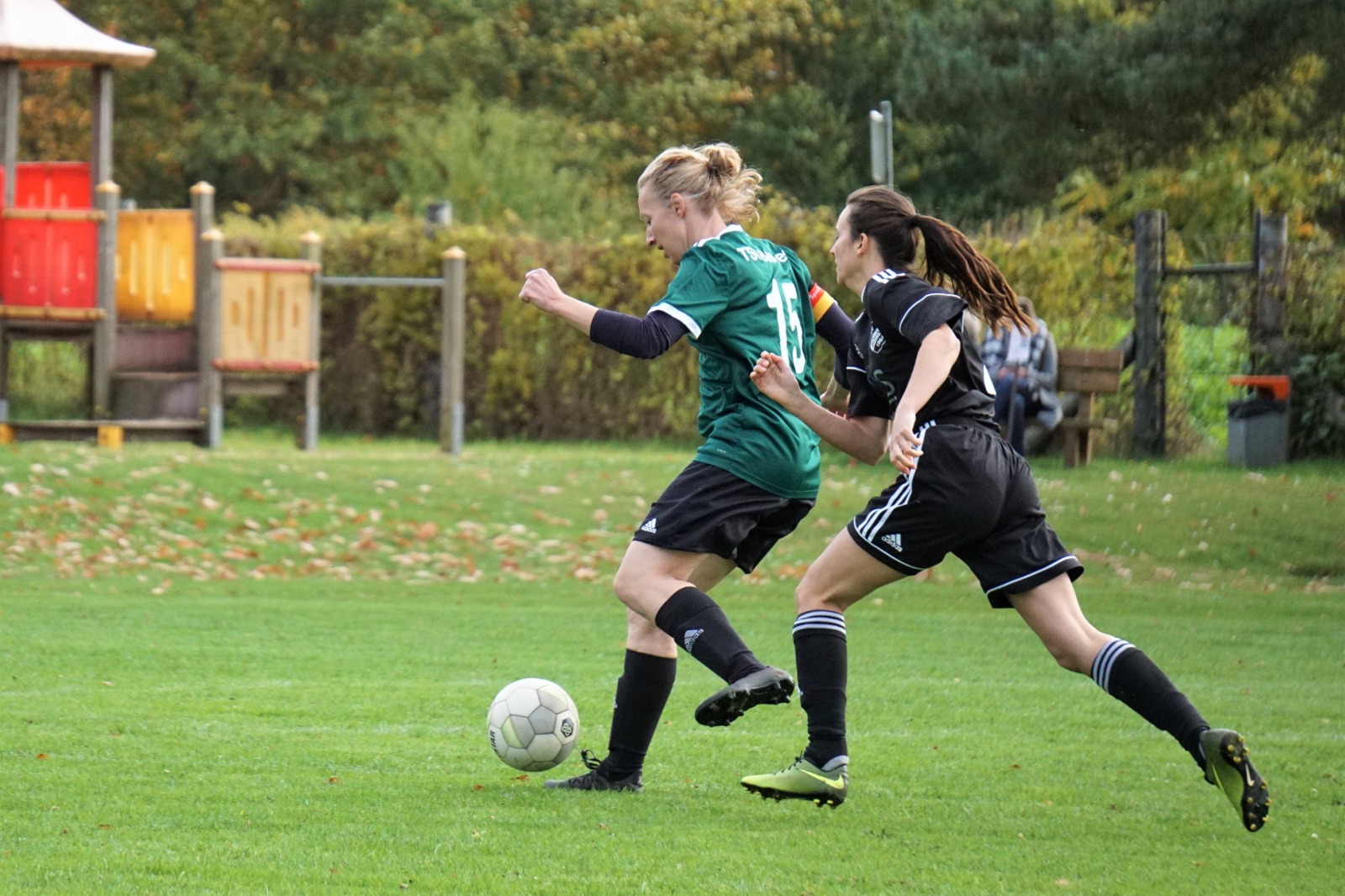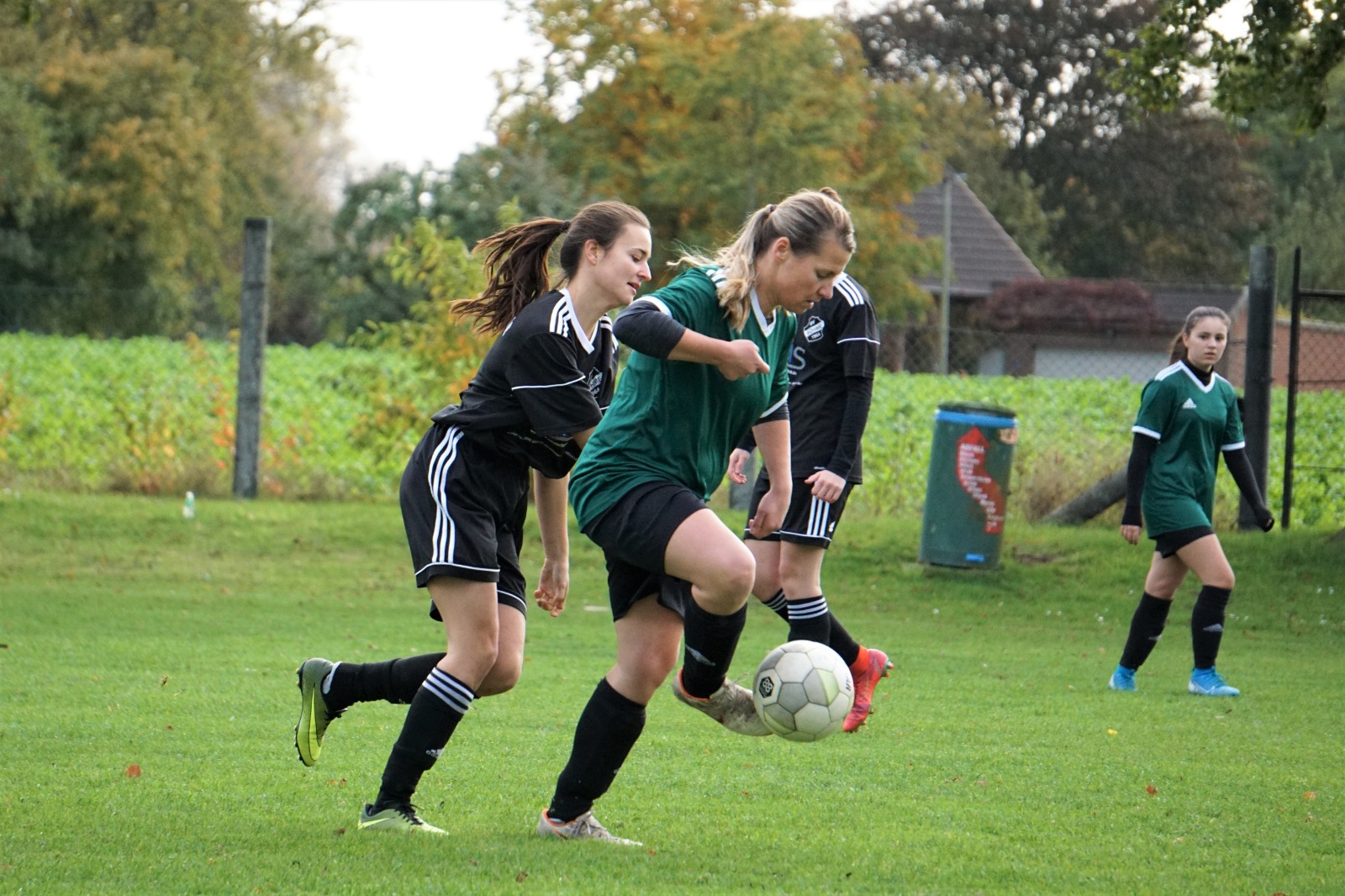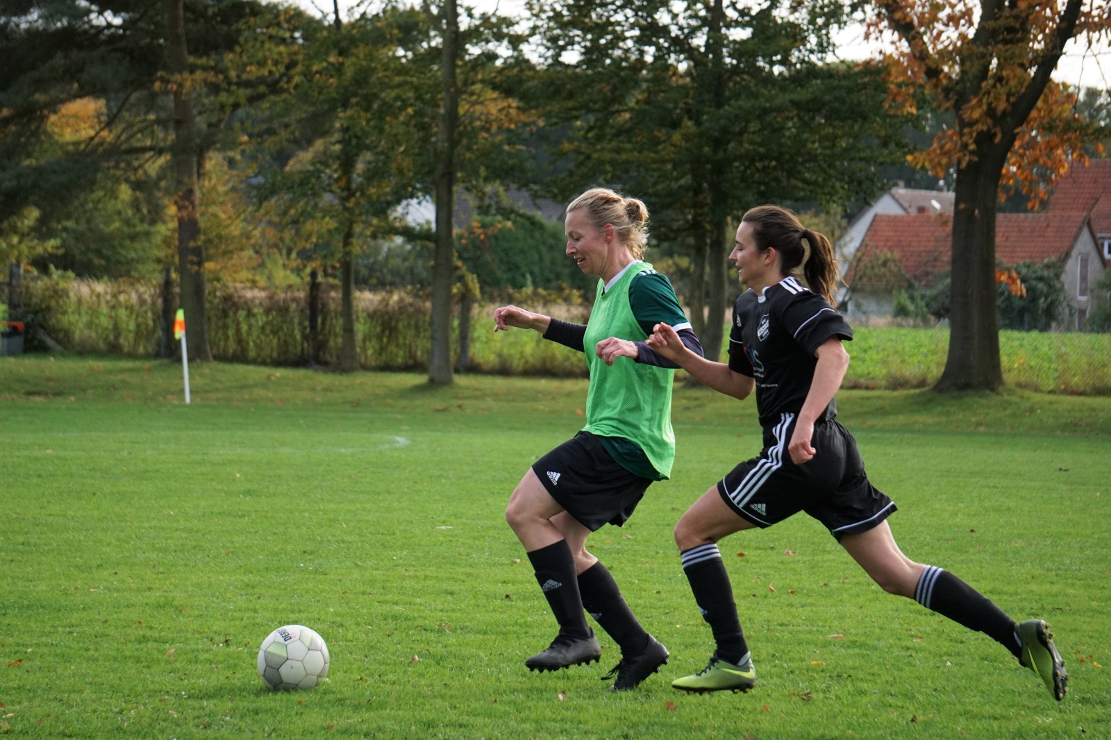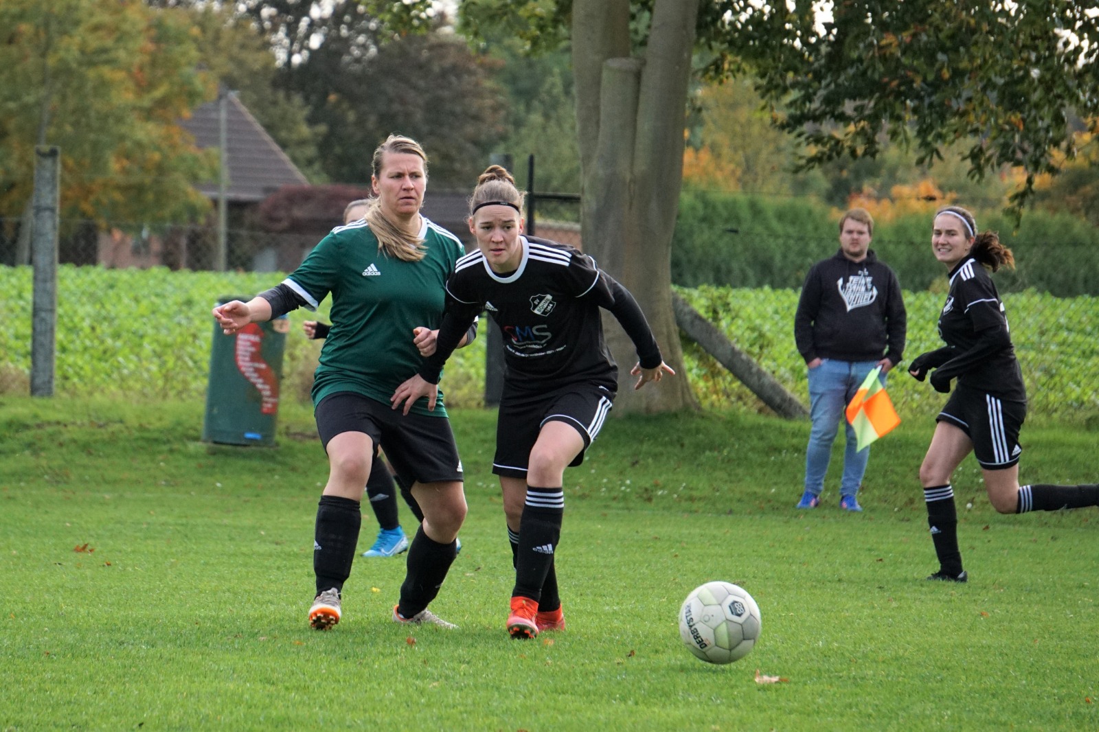Schönstes Herbstwetter, bester Rasen auf dem Heimplatz, gute Stimmung im Team. Unter solchen Voraussetzungen sollte sich auch der Tabellenerster TSV Bassen II knacken lassen.Einen Dämpfer gab es gleich in der sechsten Minute. Nachdem Böhme in der Mitte den Ball verliert, findet dieser schnell den Weg zur Bassener Torjägerin Janina Kämpfert, die mit Schnelligkeit die Abwehr hinter sich lässt und scheinbar mühelos den Ball versenkt.