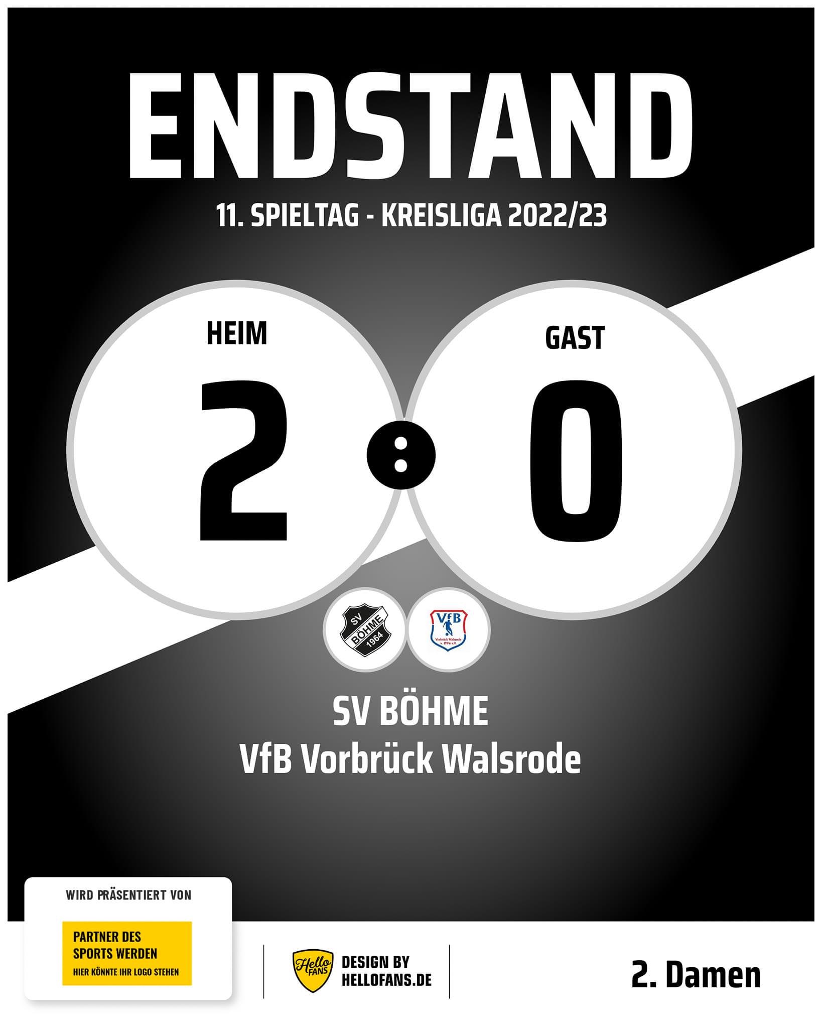 Spielbericht 2. Damen Punktspiel SV Böhme II - VfB Vorbrück Walsrode 2:0