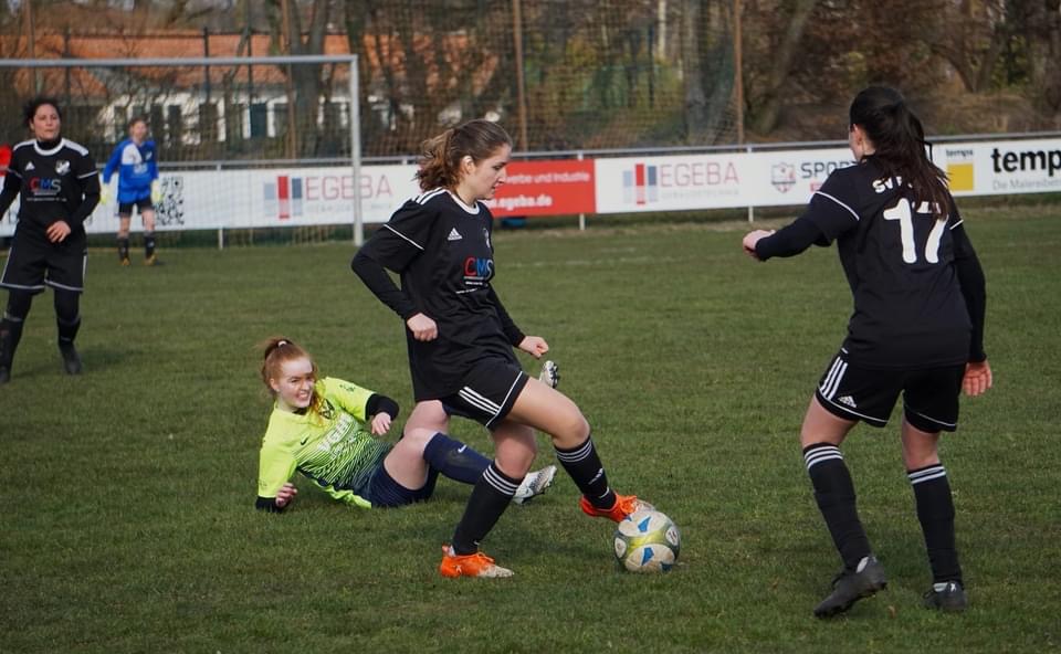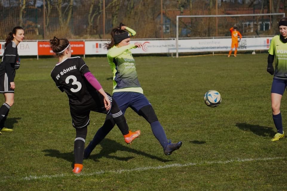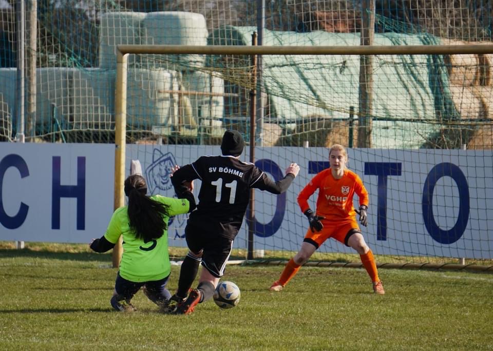 Die Motivation wurde größer das Spiel zu drehen. So waren wir auch in der zweiten Halbzeit die bessere Mannschaft und kreierten insgesamt 18:2 Torschüsse. Einen davon konnte Joena Bunke in der 70. Spielminute nach einer Vorlage von Elsa Grill nutzen. So stand es 1:1. Inzwischen ging das Spiel immer wieder mal hin und her. Böhme versuchte mit viel Ballbesitz und Kombinationen das Siegtor zu erzielen, während der RSV Rehburg durch vereinzelte Konter Akzente setzten konnte. Letztendlich pfiff der Schiri zum 1:1 Endstand ab.
