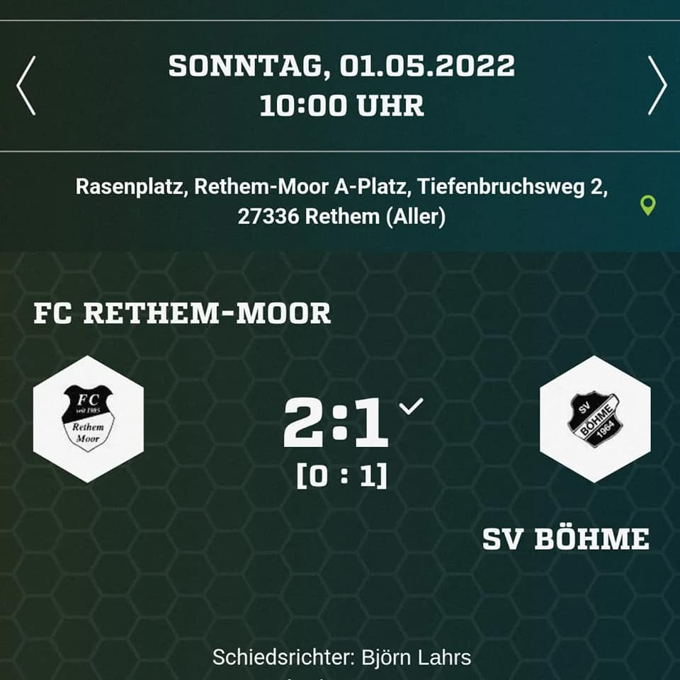 Spielbericht Alte Herren Punktspiel FC Rethem-Moor - SV Böhme 2:1