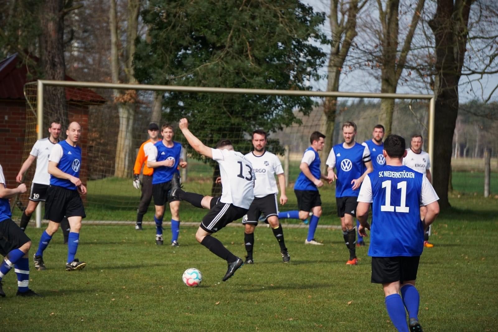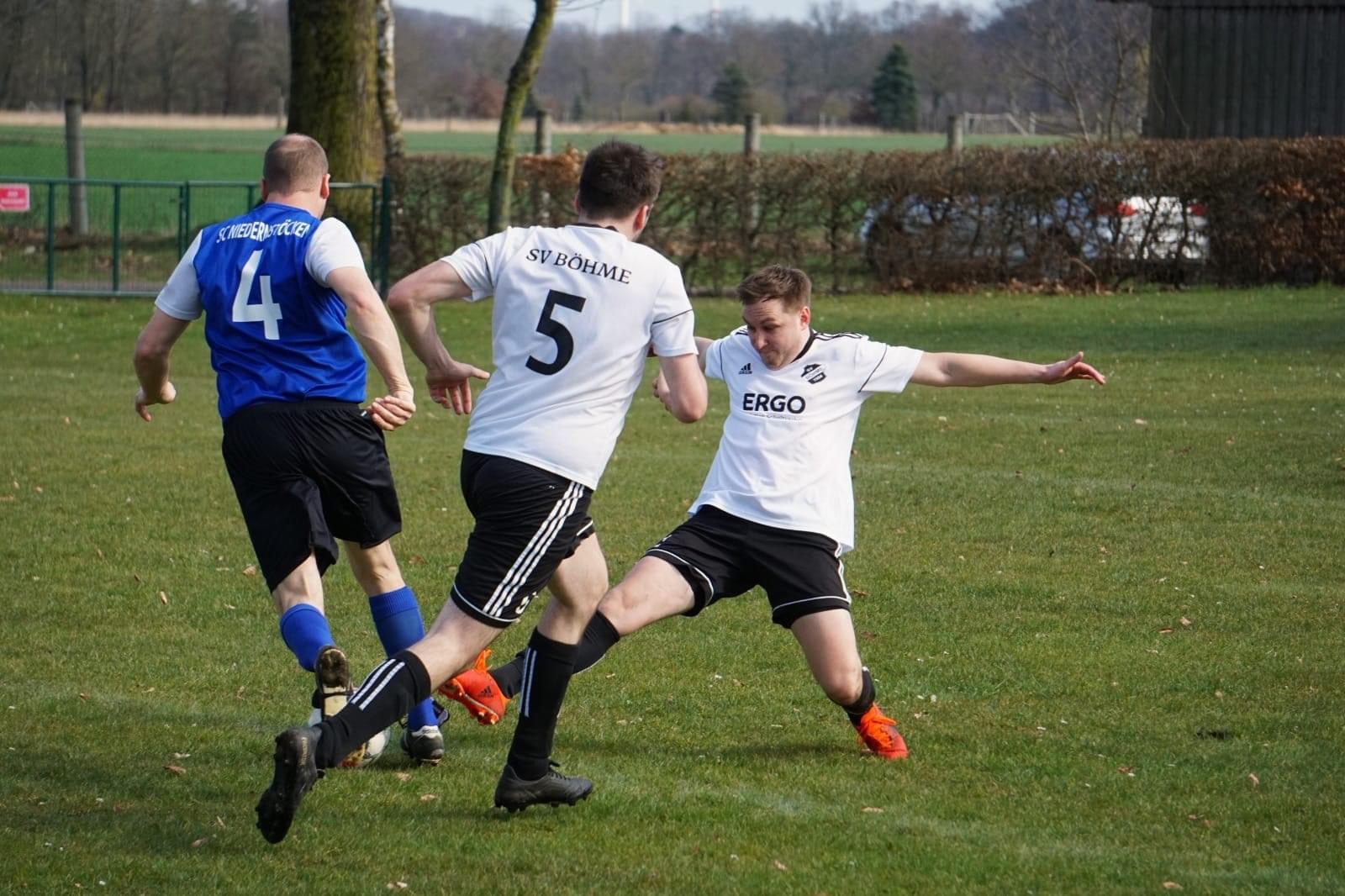 Am Sonntag morgen startete die Altherren vom SV Böhme in die Rückrunde und verlor auf heimischen Platz mit 1:4 gegen Niedernstöcken. Böhme hatte vom Spielbeginn die Oberhand behalten und die Partie lange Zeit offen gehalten, teilweise mit sehenswerten Pass Kombinationen das Spiel dominiert. Einen sehenswerten Schuss gegen das Lattenkreuz hatte Patrick Prüshoff. Nach circa drei Jahren Pause, gab Basti Hibbing sein Come-back im Trikot vom SVB. Basti du hast heute einen gutes Spiel gemacht. Wir freuen uns auf weitere Spiele mit dir. Auch im weiteren Verlauf der ersten Hälfte war das Team vom SVB spielbestimmend, nur das Tor fehlte. Trotz der hohen Spielanteile war es nicht möglich ein Tor gegen Niedernstöcken zu erzielen. In der zweiten Hälfte kamen die Gäste immer besser ins Spiel. Das erste Tor schoss allerdings der SVB. Durch einen Hand Elfmeter hatte Patrick die 1:0 Führung erzielt. Nach der Führung verlor der SVB immer mehr und mehr das Spiel auf dem Platz. Der Gast aus Niedernstücken wurde immer stärker und sein Kombinationsspiel besser. Vielleicht war das 1:4 in der Höhe ein oder zwei Tore zu hoch aber auf das Spiel kann man aufbauen.