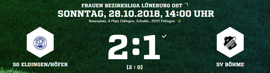 Die Gastgeberinnen waren von der ersten Minute an konzentriert und willensstark auf dem Platz und machten somit in den ersten 30 Minuten des Spiels mächtig Druck, erarbeiteten sich dadurch gute Chancen, wovon gleich 2 genutzt wurden, leider auch unter unserer Mithilfe. Der erste Treffer fiel von der rechten Seite, wobei unsere Abwehr hier die Flanke durch ein kommunikatives Missverständnis erst gefährlich machte und somit einen großen Anteil an dem Führungstor hatte, denn die Flanke wurde durch einen „eigenen Kopf“ ins Netz gelenkt. Der Treffer war jedoch verdientes Ergebnis der Angriffsbemühungen und der sichtlichen Spielfreude der Eldinger Spielerinnen. Das 2:0 folgte nach einem Freistoß aus größerer Distanz. Der Ball kam direkt auf zentrale Position und schlug knapp unter der Querstange ein. Nun galt es schnell, das Spiel mal „richtig“ aufzunehmen, um in Eldingen nicht völlig unter die Räder zu geraten, denn danach sah es aus, aber vorerst war jedoch Halbzeitpause und Zeit, das SVB -Team wieder in die richtige Bahn zu bringen. Nach dem Seitenwechsel sah man dann auch ein völlig anderes Team, das nun sehr präsent auf den Platz stand, Einsatzbereitschaft und hohe Lauffreudigkeit zeigte und so deutlich machte, dass sie dieses Ergebnis nicht einfach hinnehmen will und dafür auch bereit ist, die notwendigen Schritte zu machen. Diese Einstellung sah man nun deutlich auf dem Platz und Böhme machte bereits von der 46 Minute an viel Druck und erspielte sich nun eine Chance nach der Anderen. Der verdiente Anschlusstreffer fiel dann nach einer Flanke von der rechten Seite durch Lena, die den Ball direkt nahm und im unteren linken Tor unterbrachte. Auch der immer stärker werdende Druck in den letzten 15 Minuten auf das SG-Tor zeigte, auch nach einigen noch offensiveren Umstellungen innerhalb der Aufstellung, dass es eigentlich nur eine Frage der Zeit war, bis der bereits auch verdiente Ausgleichstreffer „fällig“ war, jedoch wurden die Böhmer Bemühungen an diesem Tage nicht belohnt und man musste sich mit 2:1 geschlagen geben. Bei einem solchen Spiel könnte man auch noch über so einige Entscheidungen bzw. aus unserer Sicht „Fehlentscheidungen“ des Schiedsrichters reden oder diskutieren, aber letztendlich ist es immer die eigene Leistung, die das Ergebnis einer Partie bildet und diese erste Halbzeit reichte nicht um ein Spiel erfolgreich zu gestalten. Diese unnötige Niederlage war einfach unserer undiskutablen Leistung im ersten Durchgang geschuldet. Es reicht einfach nicht nur eine gute Halbezeit zu spielen, wenn man in dieser Bezirksliga im oberen Drittel mitspielen will und das ist mittlerweile unser Ziel und Anspruch, auch als Aufsteiger. Nun heißt es dieses Spiel schnell aufzuarbeiten, notwendige Umstellungen durchzuführen und sich neu einzustellen, denn bereits am kommenden Mittwoch geht es zum Nachholspiel zur SG Laßrönne/Borstel-Sangenstedt und dort wollen wir auch versuchen zu punkten.