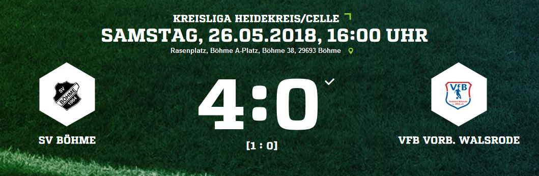 Mit einem klaren 4:0 Heimsieg gegen den VfB Vorbrück Walsrode hat die Mannschaft den Staffelsieg im vorletzten Saisonspiel klar gemacht. Mit nunmehr 4 Punkten vor dem SC Tewel ist der SV nicht mehr einzuholen und schaffte somit den direkten Wiederaufstieg in die Bezirksliga 18/19.