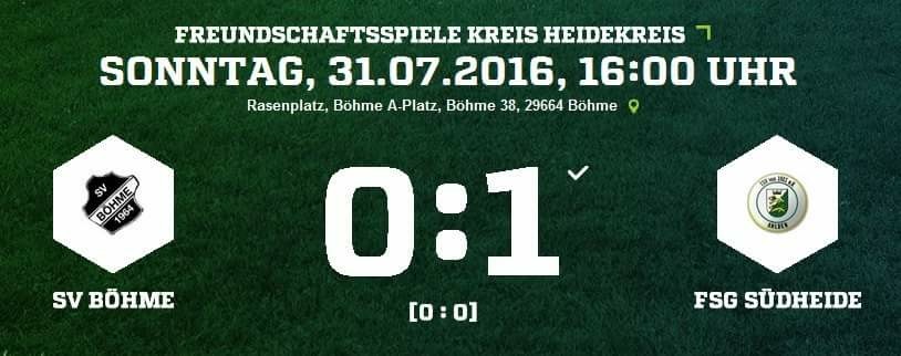 Im Anschluss an das Pokalspiel der Zweiten, testete unsere Erste gegen die klassenhöhere FSG Südheide. Das Spiel entwickelte sich zu einer relativ zähen, jedoch nicht unattraktiven Angelegenheit, mit wenigen nennenswerten Chancen auf beiden Seiten. Unsere Böhmer knüpften an die gute zweite Halbzeit aus dem Pokalspiel am vergangenen Wochenende gegen Soltau an und ließen die Südheider kaum zur Entfaltung kommen. Folgerichtig ging es mit einem torlosen Remis in die Pause.