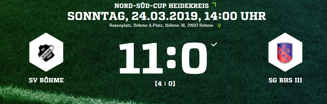 Spielbericht Herren Nord-Süd Cup SV Böhme - SG BHS III 11:0