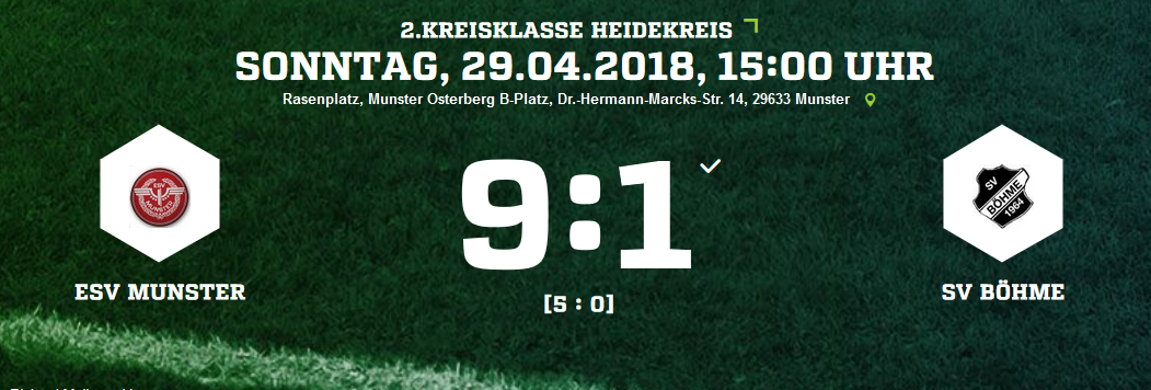 Spielbericht Herren Punktspiel ESV Munster - SV Böhme I 9:1