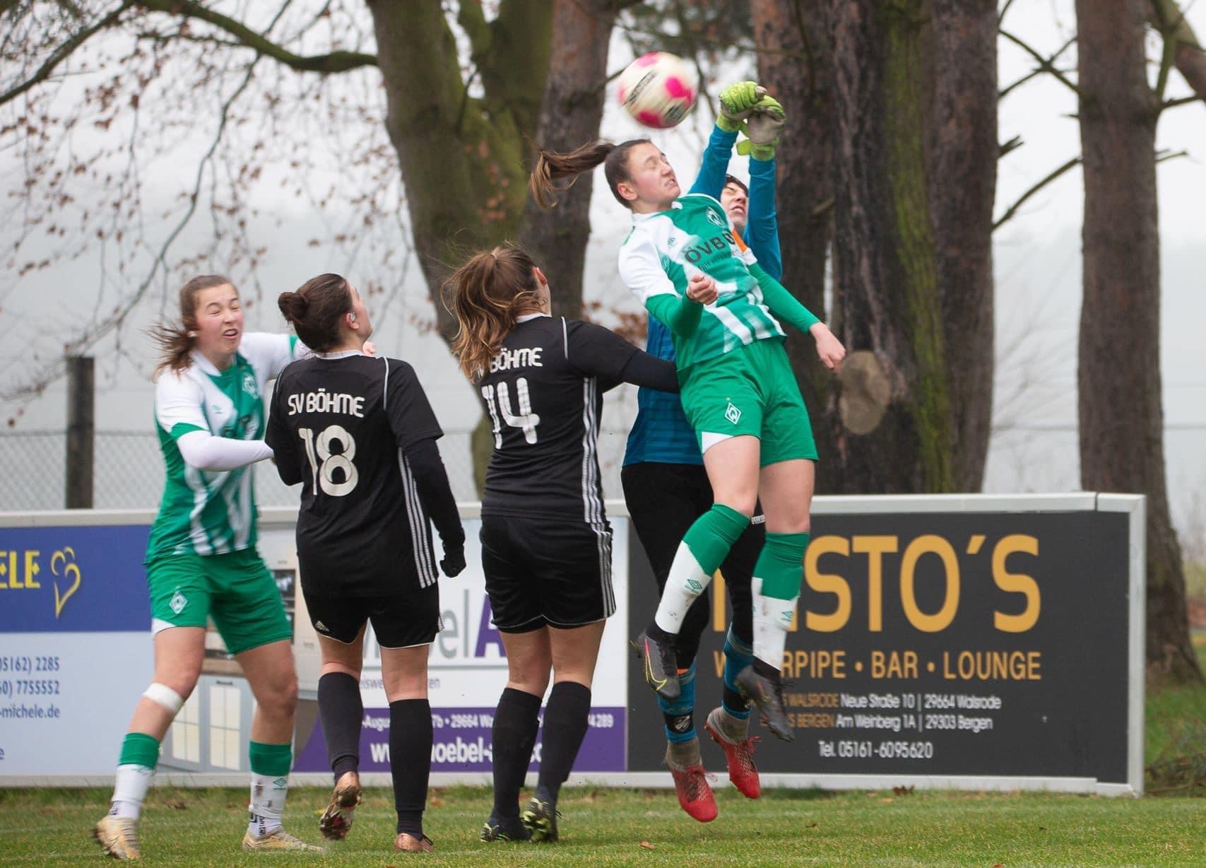 Die Verbandsligistinnen aus Bremen, angereist als ungeschlagener Tabellenführer der Verbandsliga Bremen und mit einem Torverhältnis in der Liga von 86:1, bei acht ausgetragenen Spielen, zeigte sich als spielstarker und technisch hervorragender Gegner für die Böhmerinnen. Jedoch kämpfte Böhme, wie auch gewohnt, gerade in ihren Heimspielen, um jeden Meter des Spielfeldes und hielten spielerisch dagegen. Bremen erwischte einen perfekten Start, durch einen verwandelten Foulelfmeter, bereits in der 2’ten Spielminute, der aus Böhmer Sicht doch leider vermeidbar war. Die Hausherrinnen ließen sich jedoch durch diesen frühen Rückstand nicht beeindrucken und erst gar nicht demotivieren.