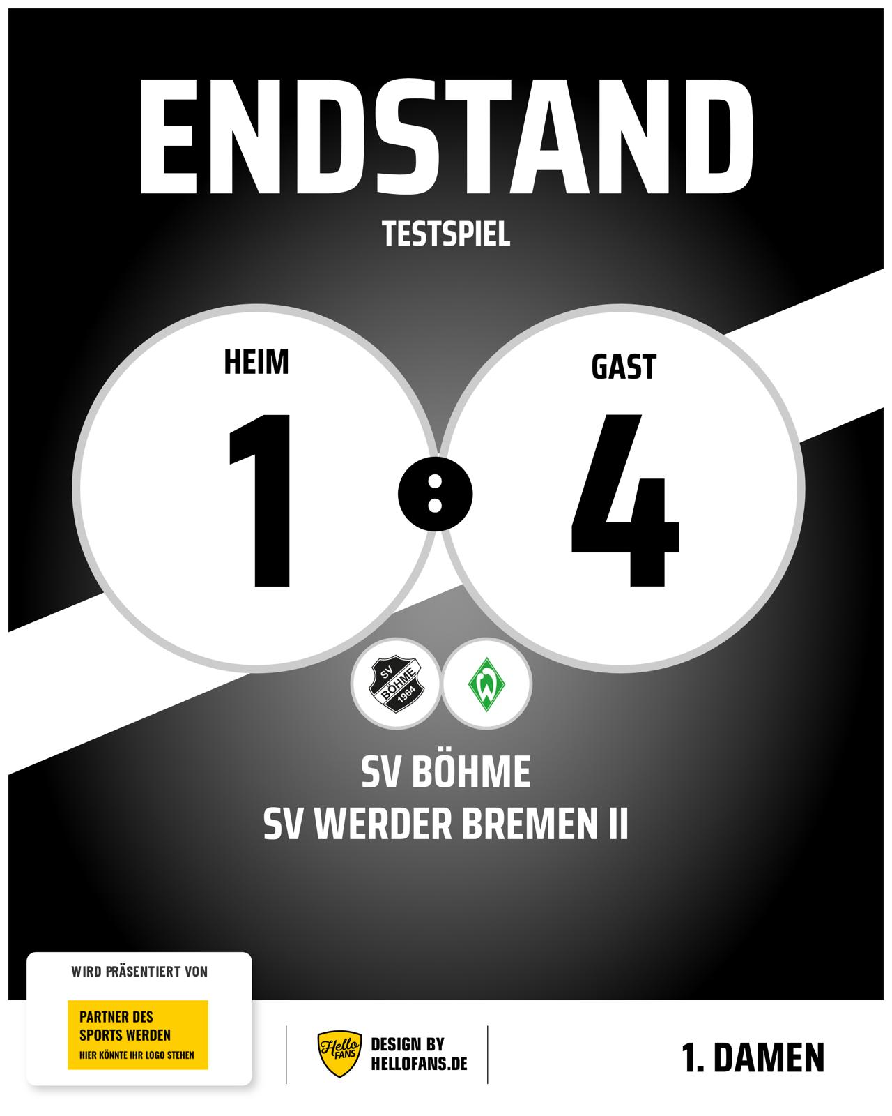 Spielbericht 1. Damen Testspiel SV Böhme - SV Werder Bremen II 1:4