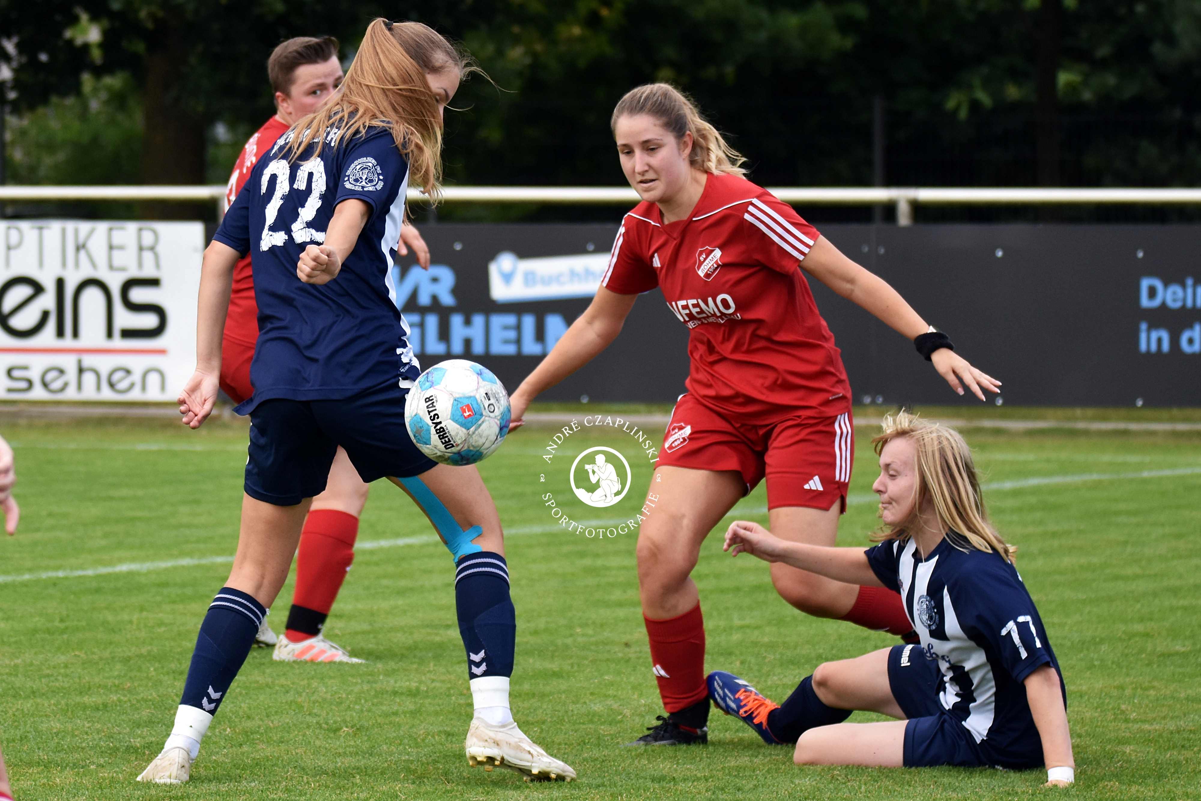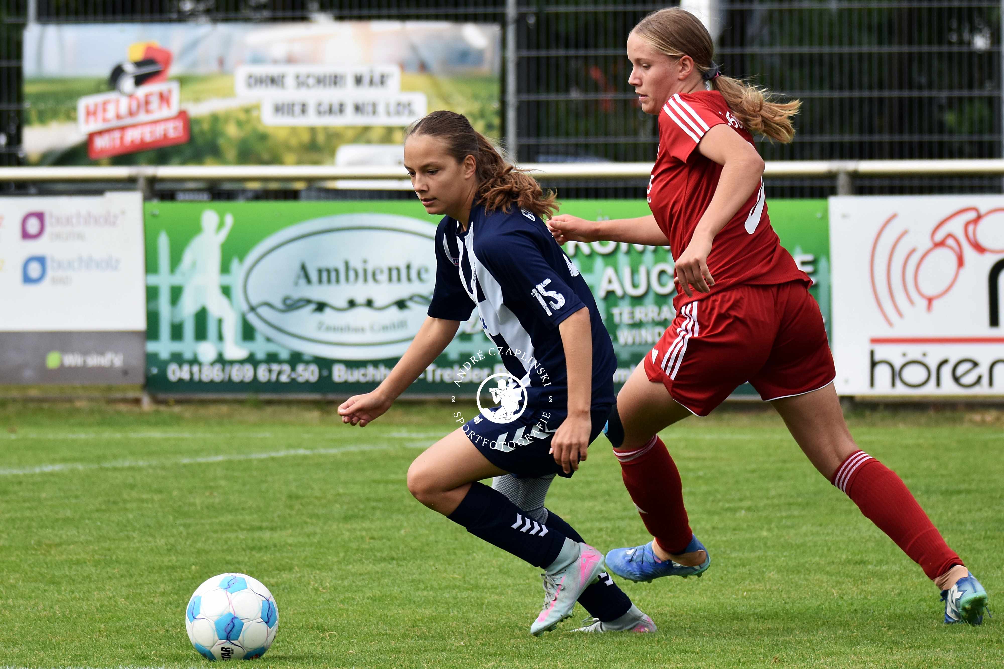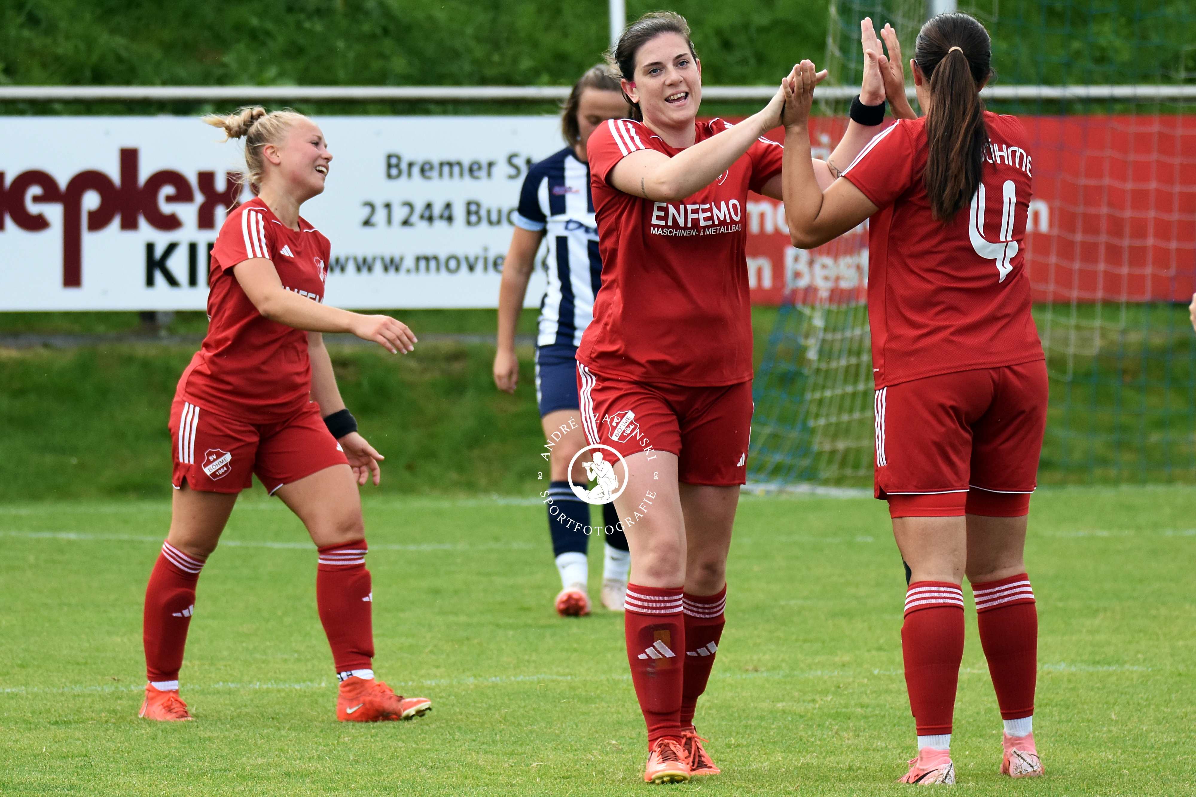 Auch unser 2‘tes Auswärtsspiel in der Bezirksliga konnten wir verdient, mit einem 3:5 bei Buchholzer FC, gewinnen. Die ersten 10 Spielminuten gehörten eindeutig den Hausherrinnen, die jedoch ihre Chancen nicht nutzen konnten, erst danach dieser Druckphase kam Böhme besser ins Spiel und erarbeitete sich eigene Möglichkeiten. Nach einem Pass durch Merle aus dem Zentrum steil auf den linken Flügel, setzte sich Wiebke dort gegen ihre Gegenspielerin durch und schoss zur Böhmer Führung ein. In der 25 Minute viel der Ausgleichstreffer, nach einer BFC Ecke. Unsre ansonsten gute aufgelegte Torfrau Pia konnte einen eigentlich harmlosen Ball kurz vor der Torlinie nicht festmachen „es war wie eine heiße Kartoffel“, so rollte der Ball über die Linie. Nach einer halben Stunde wiederum erzielte Joanna, mit einem Weitschuss aus 25 Metern von der halbrechten Seite, den erneut verdienten Führungstreffer. Jedoch fast im Gegenzug, startete dann der im gesamten Spielverlauf nicht glückliche Auftritt des Schiedsrichters, der eine klare 2 Meter-Abseitsposition nicht sah / nicht ahndete, so dass die BFC Spielerin mühelos weiterlaufen konnte und dann den erneuten Ausgleich markierte. Nachdem Seitenwechsel in der 68 Minute, gab es dann ein richtiges negatives Déjà-vu Erlebnis für uns, denn erneut blieb der erforderliche Abseitspfiff des Unparteiischen aus und Buchholz ging mit 3:2 erstmalig in Führung. Die letzten 20 Minuten wurden zu einem waren Böhmer Sturmlauf, das Motto war jetzt klar, „jetzt erst recht“ und alle Spielerinnen stemmten sich gemeinsam gegen diesen Spielstand, den man unbedingt so nicht stehenlassen wollte. Die erste Belohnung holte sich Emma, mit einem Heber aus 20 Metern, zum verdienten Ausgleich. Mit dem Ablauf der regulären Spielzeit legte Joanna, mit ihrem 2‘ten Tagestreffer, zur Führung nach und drehte somit das Spiel. Den Schlusspunkte zum 3:5 markierte erneut Wiebke, auch mit ihrem 2‘ten Treffer des Tages, nach einem Alleingang, in der Nachspielzeit, kurze Zeit danach wurde die Partie abgepfiffen.