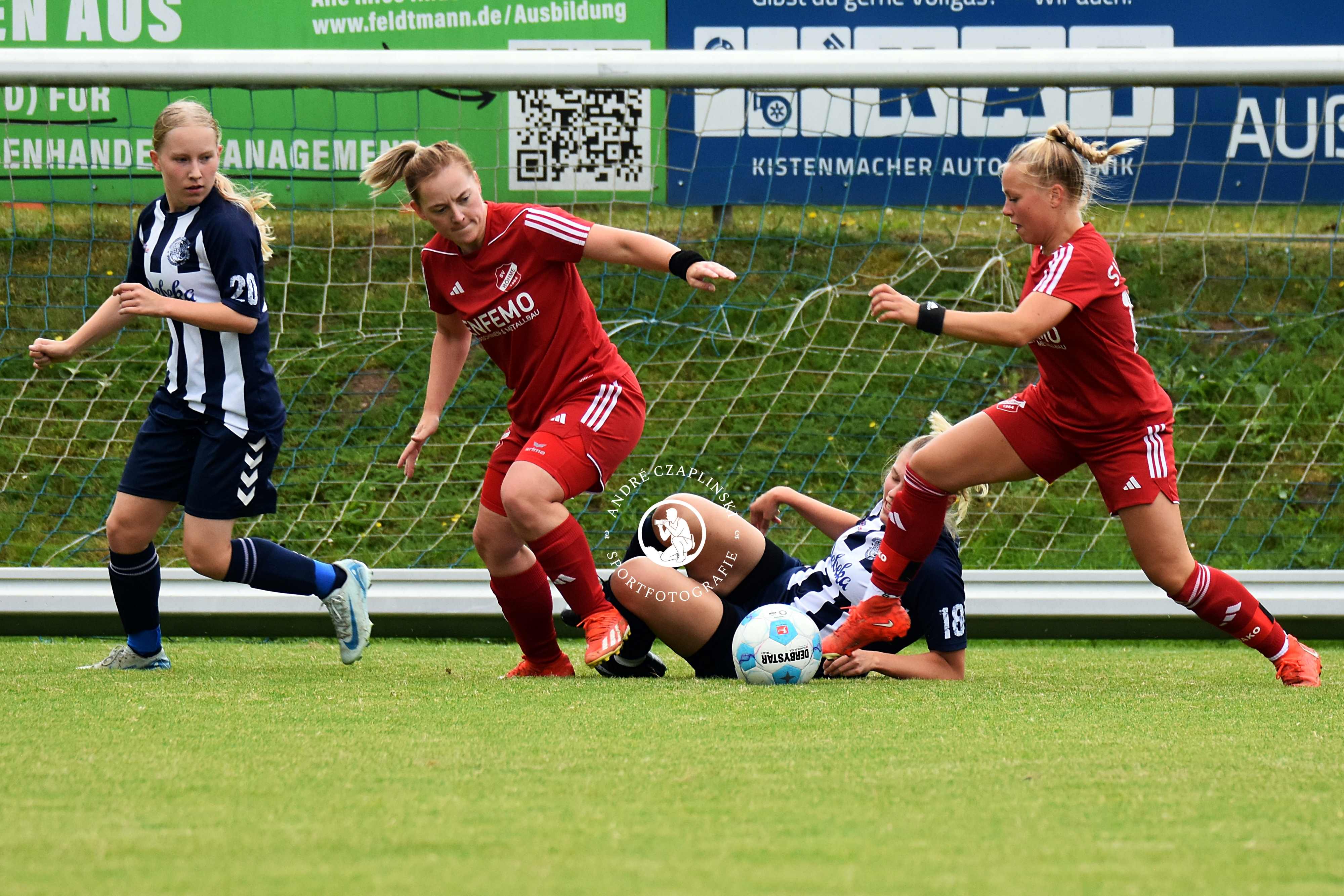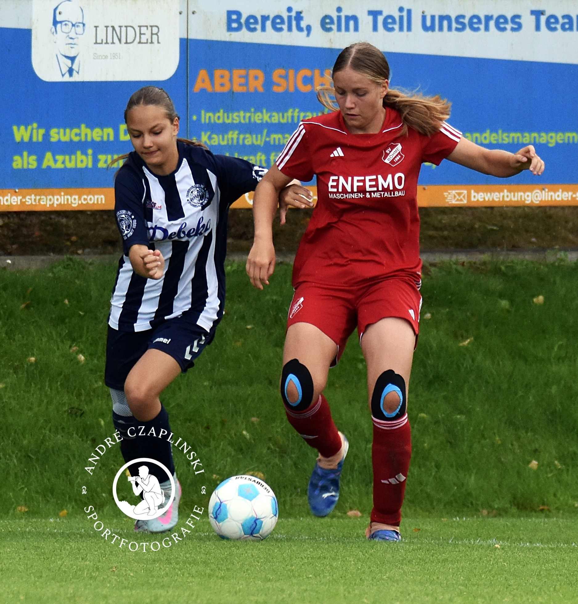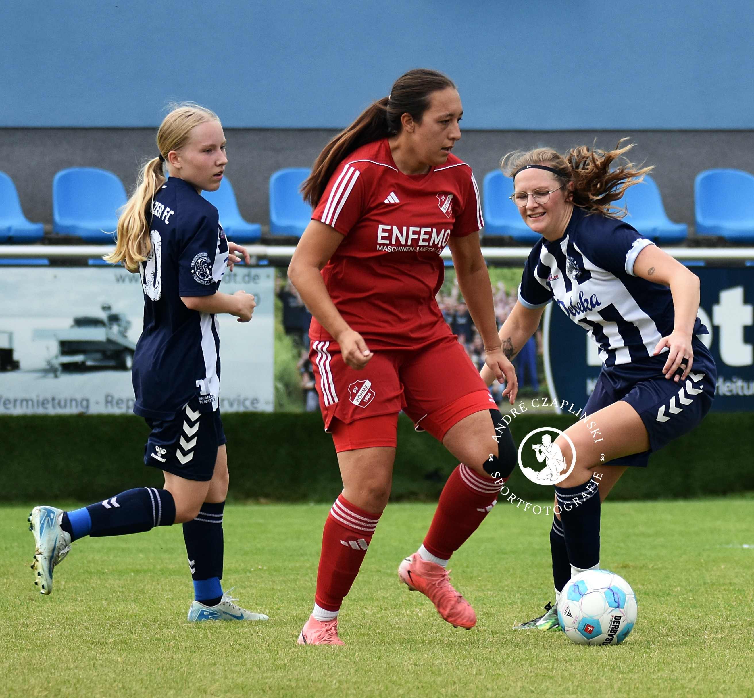 Auch unser 2‘tes Auswärtsspiel in der Bezirksliga konnten wir verdient, mit einem 3:5 bei Buchholzer FC, gewinnen. Die ersten 10 Spielminuten gehörten eindeutig den Hausherrinnen, die jedoch ihre Chancen nicht nutzen konnten, erst danach dieser Druckphase kam Böhme besser ins Spiel und erarbeitete sich eigene Möglichkeiten. Nach einem Pass durch Merle aus dem Zentrum steil auf den linken Flügel, setzte sich Wiebke dort gegen ihre Gegenspielerin durch und schoss zur Böhmer Führung ein. In der 25 Minute viel der Ausgleichstreffer, nach einer BFC Ecke. Unsre ansonsten gute aufgelegte Torfrau Pia konnte einen eigentlich harmlosen Ball kurz vor der Torlinie nicht festmachen „es war wie eine heiße Kartoffel“, so rollte der Ball über die Linie. Nach einer halben Stunde wiederum erzielte Joanna, mit einem Weitschuss aus 25 Metern von der halbrechten Seite, den erneut verdienten Führungstreffer. Jedoch fast im Gegenzug, startete dann der im gesamten Spielverlauf nicht glückliche Auftritt des Schiedsrichters, der eine klare 2 Meter-Abseitsposition nicht sah / nicht ahndete, so dass die BFC Spielerin mühelos weiterlaufen konnte und dann den erneuten Ausgleich markierte. Nachdem Seitenwechsel in der 68 Minute, gab es dann ein richtiges negatives Déjà-vu Erlebnis für uns, denn erneut blieb der erforderliche Abseitspfiff des Unparteiischen aus und Buchholz ging mit 3:2 erstmalig in Führung. Die letzten 20 Minuten wurden zu einem waren Böhmer Sturmlauf, das Motto war jetzt klar, „jetzt erst recht“ und alle Spielerinnen stemmten sich gemeinsam gegen diesen Spielstand, den man unbedingt so nicht stehenlassen wollte. Die erste Belohnung holte sich Emma, mit einem Heber aus 20 Metern, zum verdienten Ausgleich. Mit dem Ablauf der regulären Spielzeit legte Joanna, mit ihrem 2‘ten Tagestreffer, zur Führung nach und drehte somit das Spiel. Den Schlusspunkte zum 3:5 markierte erneut Wiebke, auch mit ihrem 2‘ten Treffer des Tages, nach einem Alleingang, in der Nachspielzeit, kurze Zeit danach wurde die Partie abgepfiffen.