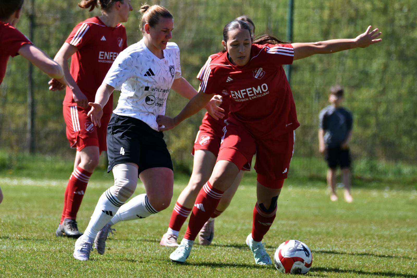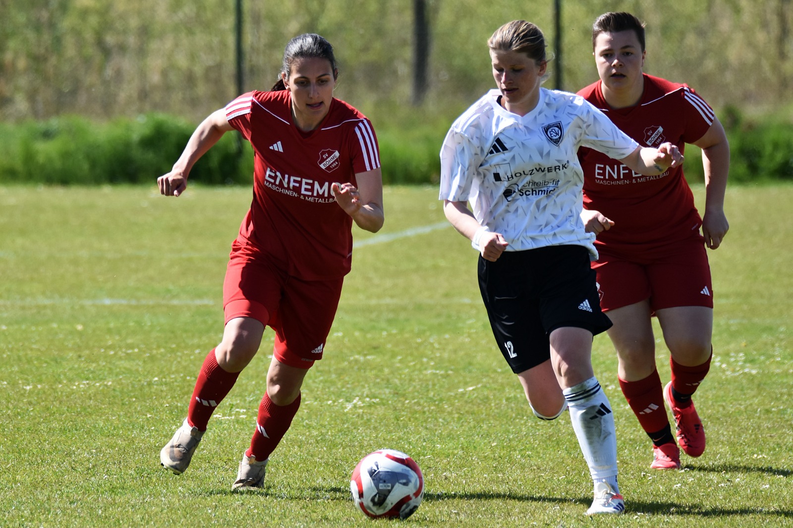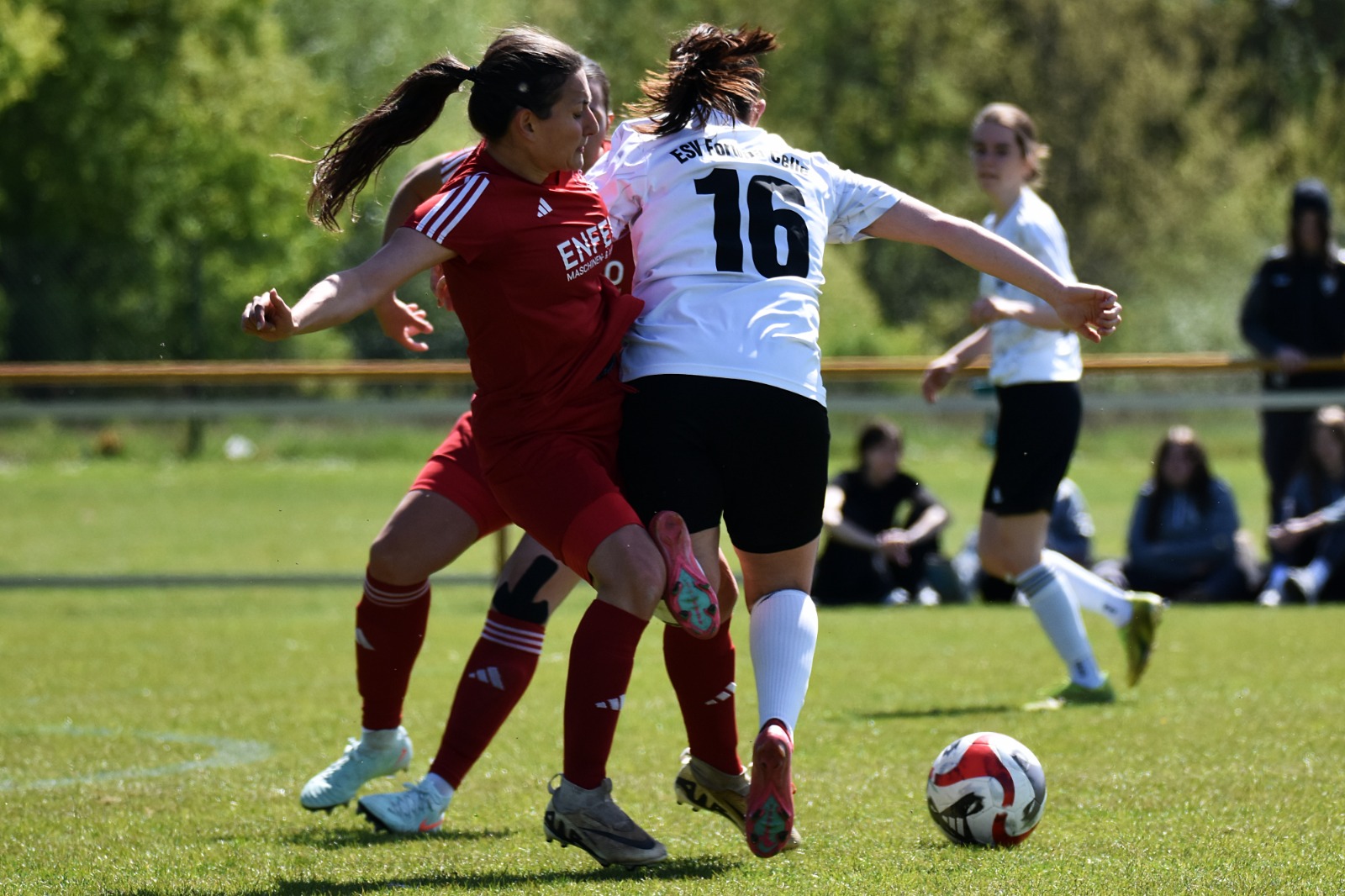 Beide Teams neutralisierten sich in den ersten 20 Minuten des Spiels, so dass auf beiden Seiten vorerst keine Torchancen zu sehen waren. Wir hatte dann zwar ein paar gute Kontersituationen, um auch verdient in Führung zu gehen, konnten diese Möglichkeiten jedoch nicht nutzen. Erst zum Ende der ersten Halbzeit fielen dann das überfällige Tor für uns. Den Treffer erzielte Bianca, die nach einem Steckpass von Joanna nicht mehr zu halten war, die Abwehrspieler und die Torfrau ausspielte und einschoss. Innerhalb einer 5 minütigen Nachspielzeit kam der ESV dann zu 2 Treffern. Celle schoss einen Freistoß aus 18 Metern, nicht wie gedacht direkt auf unser Tor, sondern spielten den Ball kurz an der Abwehrmauer vorbei und die völlig blank stehende ESV-Spielerin erzielte den Ausgleich, da haben wir kollektiv in der Abwehr gepennt. In der 45+4 Spielminute klatschte ein Weitschuss vom linken Innenpfosten ins Tor. Ein sehenswerter unhaltbarer Treffer, der jedoch in der Entstehung hätte vermieden werden müssen. Anstelle mit einer verdienten Führung gingen wir dann mit einem Rückstand in die Halbzeitpause. Dieser Doppelschlag war ein Wirkungstreffer in den Köpfen unserer Spielerinnen, dieses galt es jedoch in der Pause und spätestens nach dem Seitenwechsel schnell abzuschütteln.