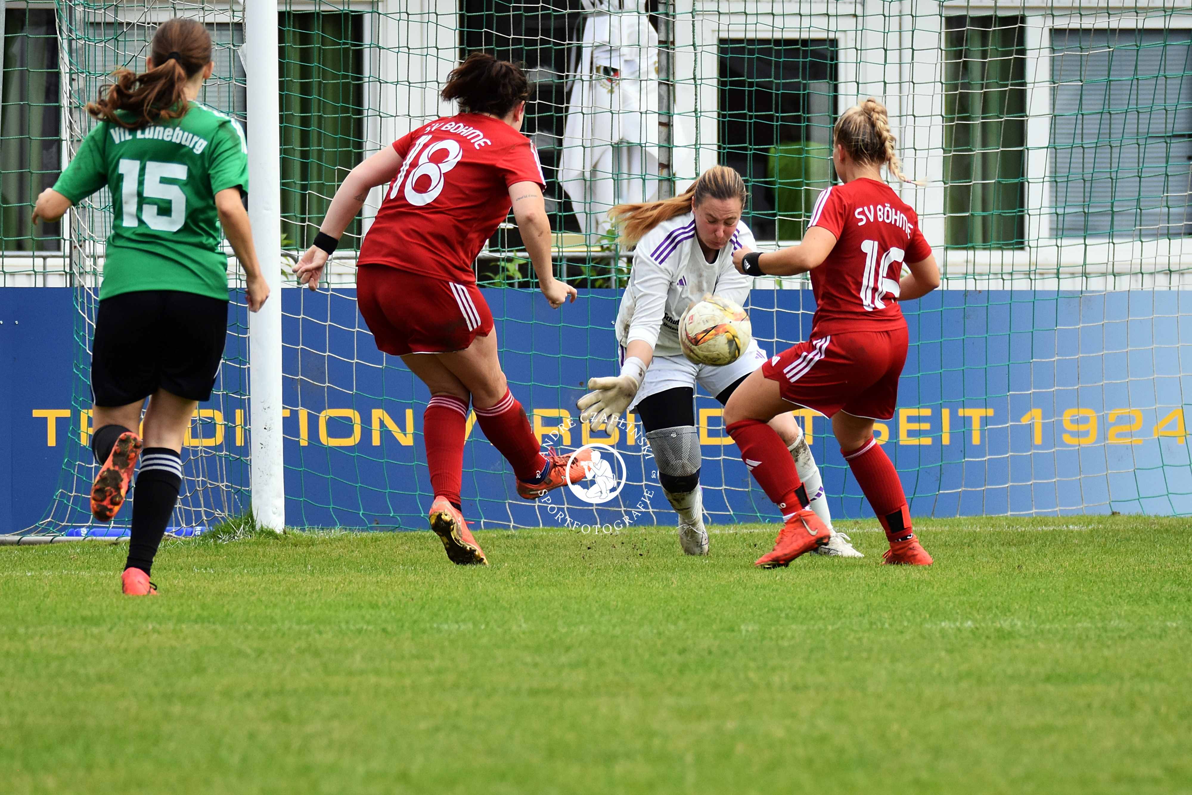 Böhme erwischte sprichwörtlich „einen gebrauchten Tag“. Bereits nach wenigen Sekunden hatten wir selbst die Möglichkeit, bereits frühzeitig in Führung zu gehen, wir verfehlten jedoch diese große Chance zum Führungstreffer, bzw. die VfL-Torfrau hielt den Ball. Nur wenige Sekunden später startet der VfL einen fast identischen Angriff über ihre rechte Seite, dieser wurde jedoch erfolgreich abgeschlossen. Somit mussten wir schon wieder einem frühen Rückstand hinterherlaufen. Weiter lief es in der gesamten 1. Halbzeit irgendwie nicht rund für uns, obwohl wir im gesamten Spiel deutlich mehr Spielanteile hatten, den meisten Ballbesitzt und einen ruhigeren und meist sicheren Spielaufbau, so zählen am Ende immer wieder nur die geschossenen Tor, und der VfL schloss dann 2 Konter über die linke Seite erfolgreich ab, somit ging es mit einem 3:0 Rückstand in die Halbzeitpause.