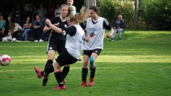 Mit einem verdienten 5:1 gewinnen unsere Bezirksliga-Frauen das lang erwartete Nachbarschaftsderby gegen den SV Hodenhagen. Wie auch schon in den letzten Spielen starteten wir konzentriert, schwung- /druckvoll und konnte erneut eine schnelle Führung erzielen, bereits in der 3 Spielminute. Eine Einwurf-Flanke von Alex flog bis vors Tor, Janka stand am langen Pfosten genau richtig und konnte den Ball recht ungehindert einschießen. In der 15 Minute war es erneut Janka, die ein „richtiges Pfund“ auspackte und den Ball aus 20 Metern aus zentraler Position mit links in den linken oberen Winkel zirkelte, ein sehenswerter Treffer. Wir haben genug Spielerinnen, die genau solche Bälle spielen können, aber leider zu wenig davon Gebrauch machen, hier muss einfach mehr Mut und Selbstvertrauen her. Den dritten Böhmer Treffer erzielte dann Emma, ehe den Gästen ein Foulelfmeter zugesprochen und dann auch sicher verwandelt wurde. Dieser insgesamt 4te Gegentreffer der bisherigen Saison war bereits der 3 Gegentreffer vom 11-Meter-Punkt. Noch vor der Halbzeitpause erhöhte Toni auf 4:1. Eine scharf herein geschlagene Ecke, getreten von der linken Seite durch Nayomi, kam nahe an das Tor, wo Toni dann den Ball letztendlich über die Linie brachte, danach war Pause und Seitenwechsel.