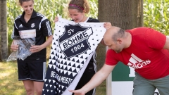 Eine Überraschung gab es für die Frauenmannschaft des SV Böhme nach dem Testspiel gegen Ahlerstedt/Ottendorf am 24.7.2022. Als Dankeschön vom Verein überreichten Lisa Lohrengel, Sascha Bernholz und Steven Rose an die Mannschaftsführerin Lisa Marie Schwarzbach Badehandtücher mit jeweils individuellem Namen der Spielerinnen für den errungenen Titel "Bezirksmeister". Wie ich finde eine tolle Geste der Beteiligten. Die Freude bei den Spielerinnen war groß. Das lädt zur Nachahmung ein.